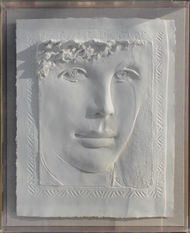 GALLO, Frank, (American, 20th Century): ''The Glance The Gaze, Cast Paper Sculpture, 38'' x 30'', pencil signed lower right, Artist Proof 11/20, custom plexiglass frame, 44'' x 37'' x 6''.