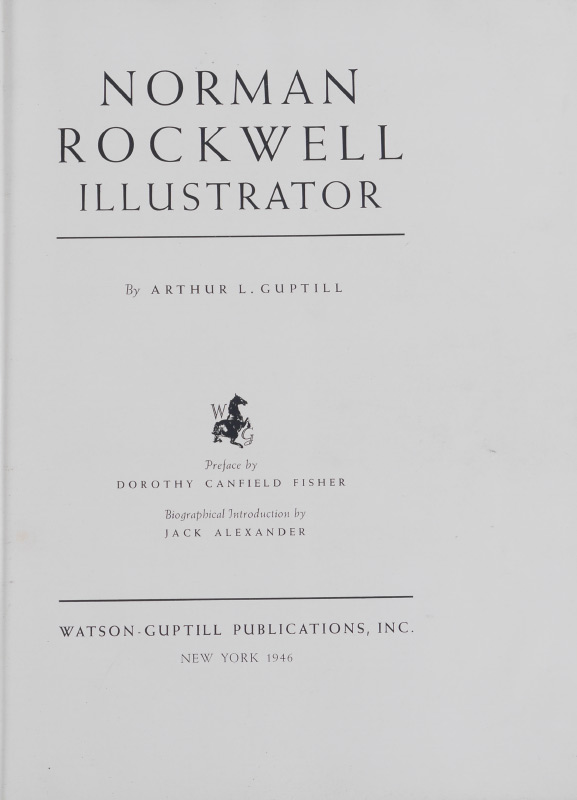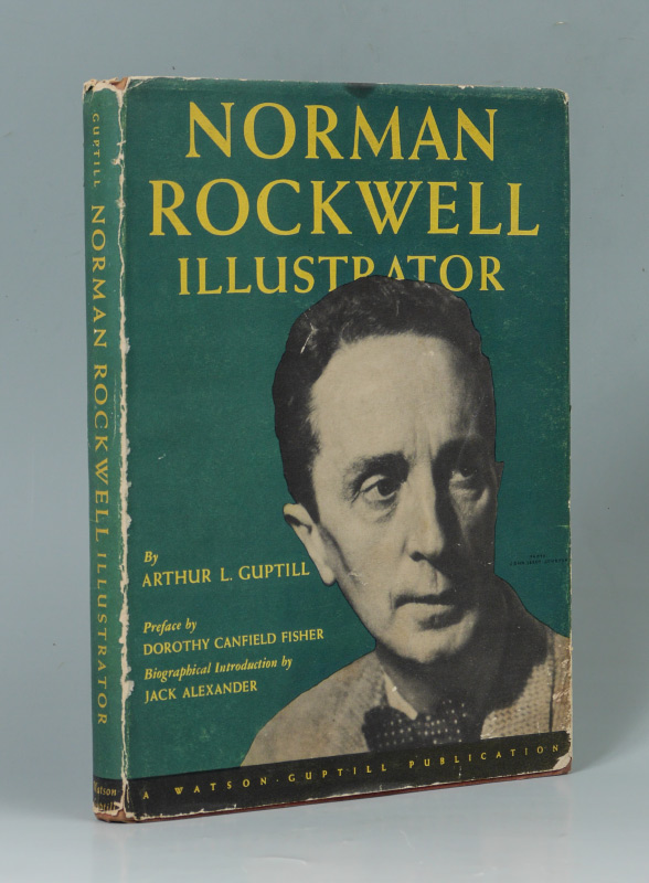 1946 NORMAN ROCKWELL ILLUSTRATOR SIGNED BOOK: Full Title ''Norman Rockwell Illustrator'' by Arthur Guptill, published New York, 1946, signed front page in ink by Norman Rockwell. Cloth boards, original dust jacket and insert for Time-Life Books. Overall measures 12'' x 9 1/4''