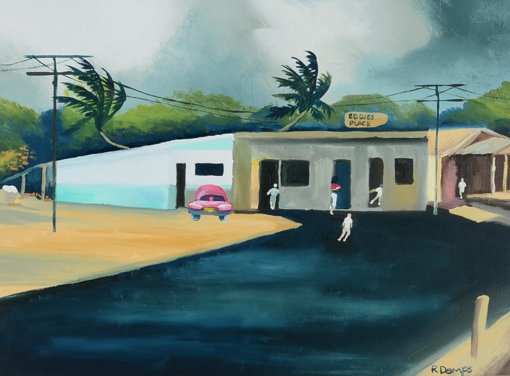 DEMPS, Rodney, (American, 20th Century): Florida Highwaymen ''Eddies Place'', depicts the location of famed Highwaymen Alfred Hair's murder, Oil/Canvas, 18'' x 24'', signed lower right, framed 23'' x 29''.