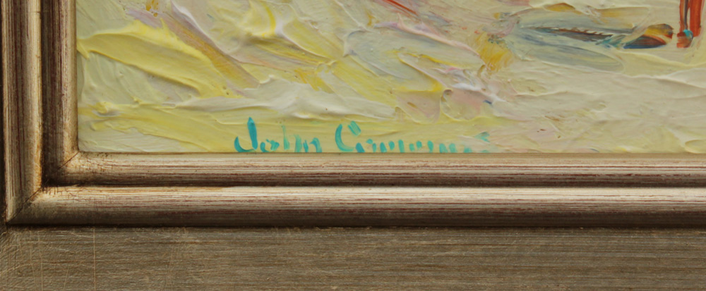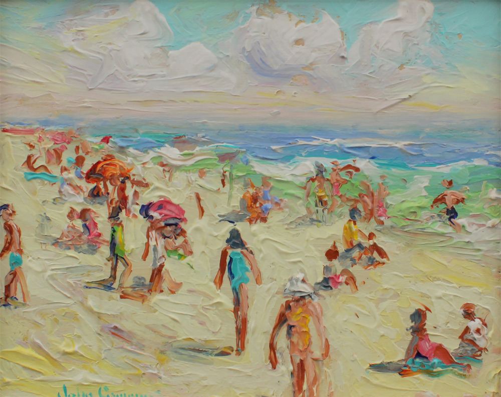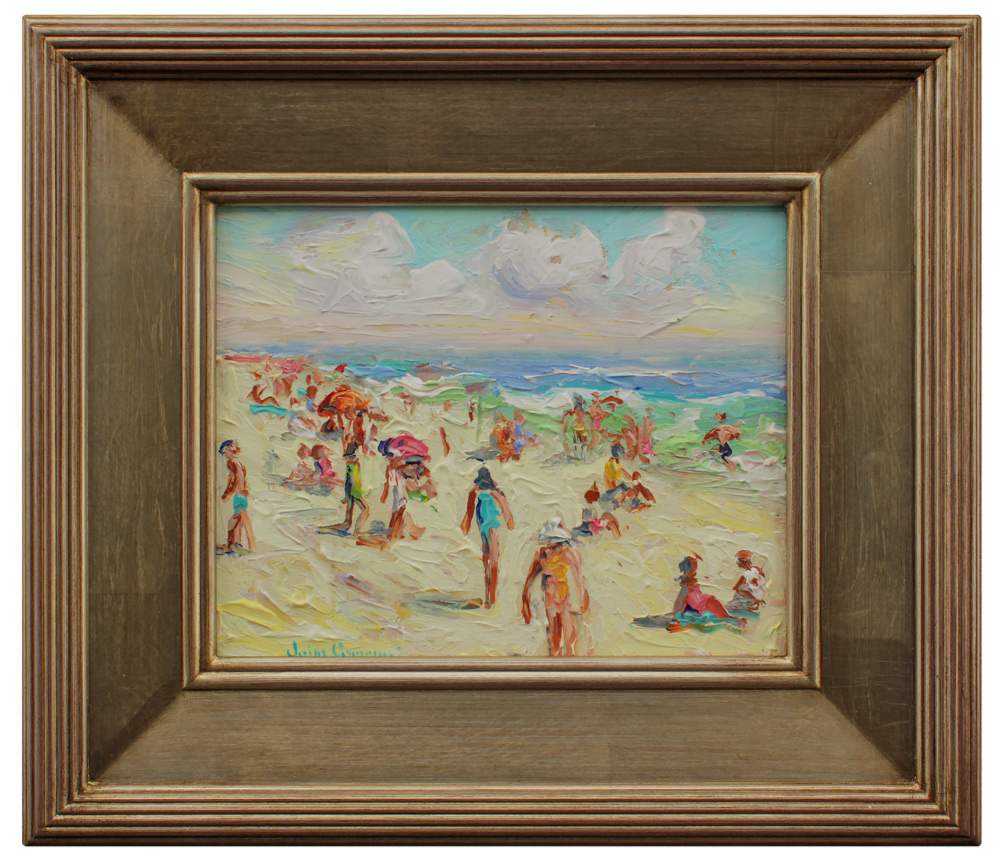 CRIMMINS, John (American, 1963-): South Hampton, NY Beach scene, Oil/Board, 8'' x 10'', signed lower left, signed and titled verso, framed, 14'' x 15''.