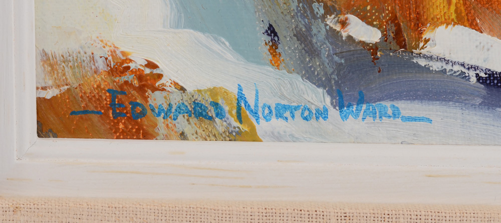 WARD, Edward Norton, (American, 1928-): ''First Frost'', winter rural landscape, Oil/Masonite, 8'' x 10'', signed lower left, signed, titled verso, gilt frame, 16 1/2'' x 18 1/4''.
