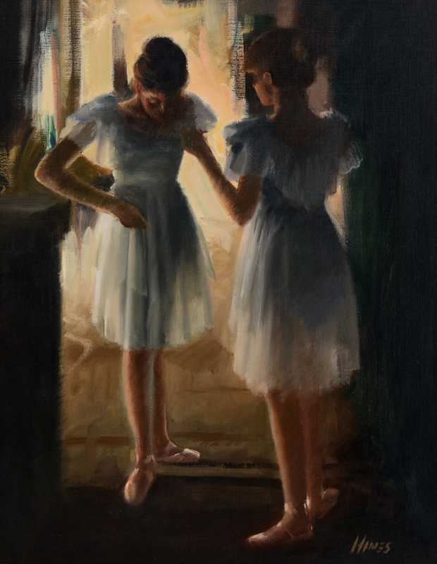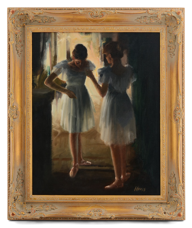 HINES JR, Charles, (American, 20th Century): ''Ballerinas'', Oil/Canvas, signed lower right, 20'' x 16'', Louis XV style frame.