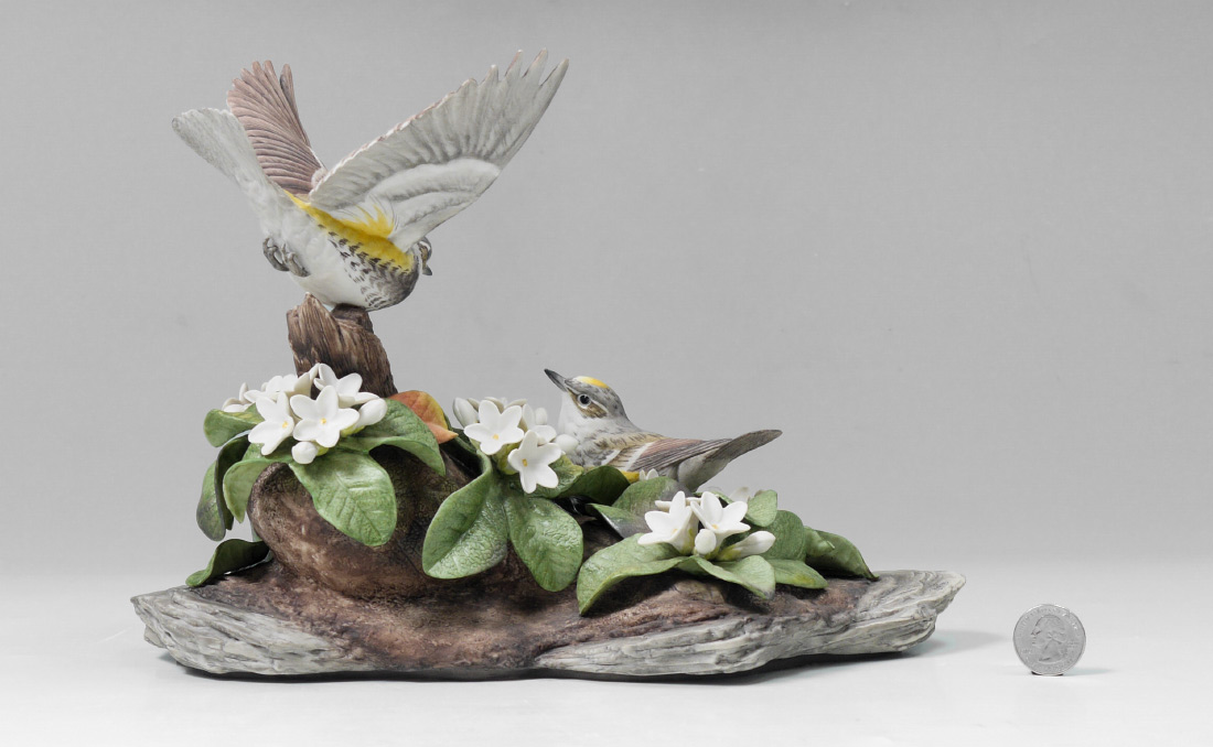 BOEHM PORCELAIN BIRD MYRTLE WARBLER: Made in USA, measures approx. 10'' x 11''.