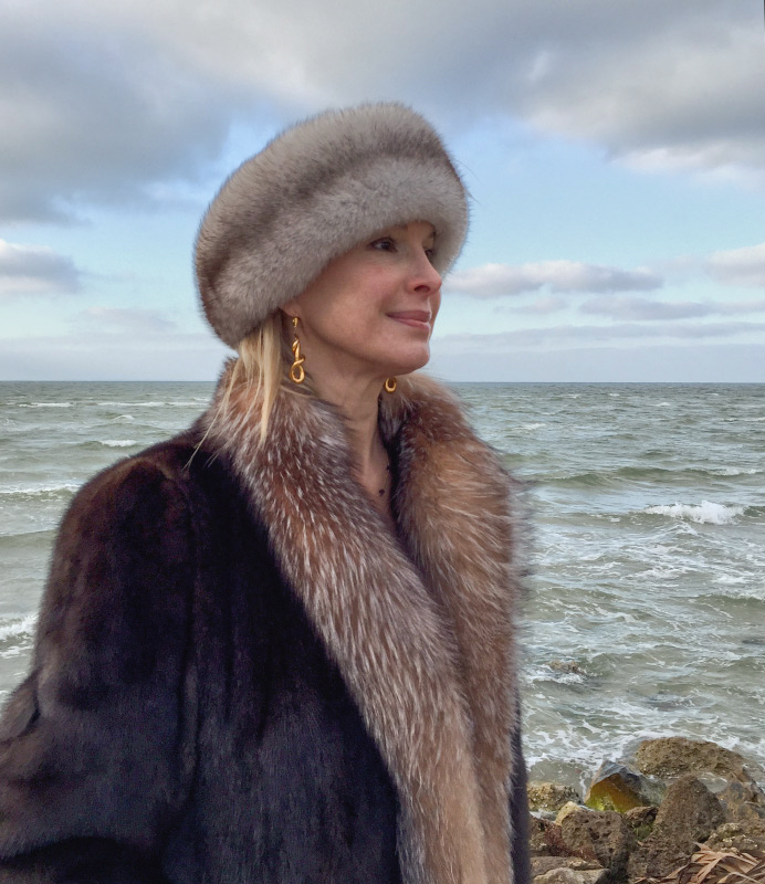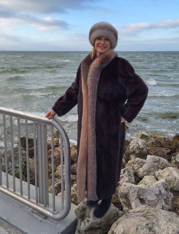 FULL LENGTH RANCH MINK COAT WITH FOX FUR COLLAR & TRIM: 49''l., 56'' sweep, monogramed ESL. Sold with a silver fox headband, 23'' long, 3'' sweep.