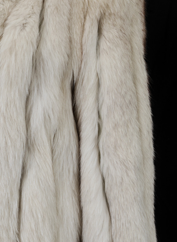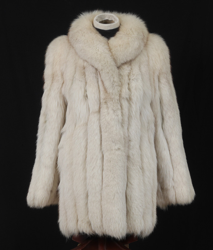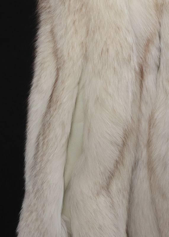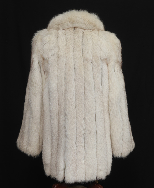 SAGA FOX LONG JACKET: Luxurious fur three quarter length coat, Saga Fox label. Measures approx. 30'' collar to hem, 19'' shoulder to shoulder and 22'' sleeve.