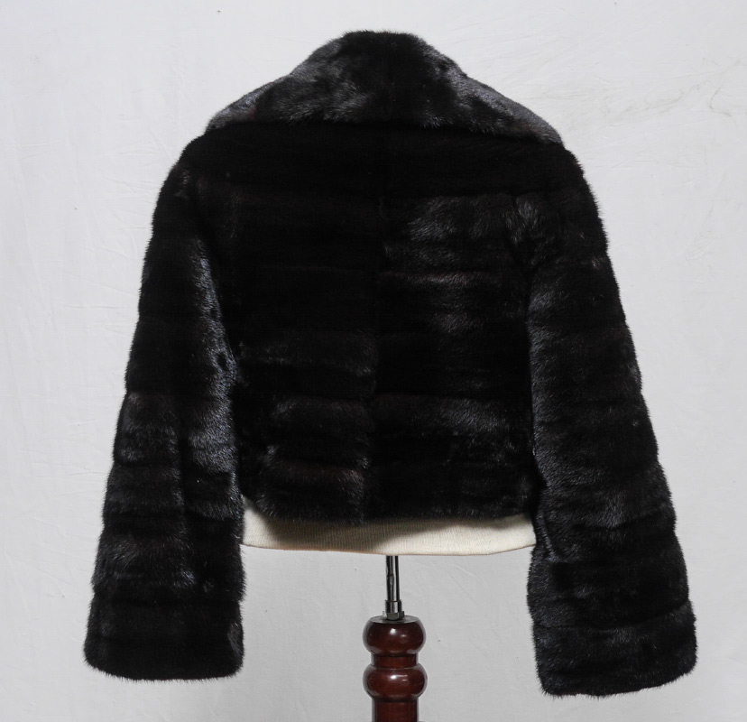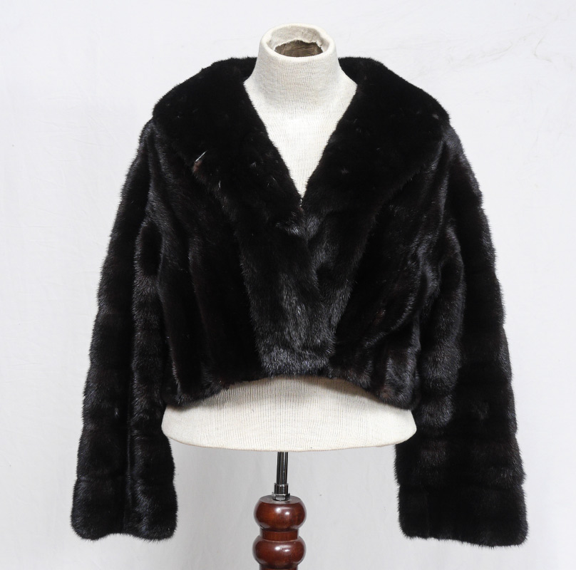 A FASHIONABLE SABLE FUR JACKET: Short waisted with lapel flowing the length of the jacket. Hidden clasp closures, slit pockets. Measures approx. 18 collar to hem, 17'' shoulder to shoulder and 22'' sleeve. Jacques Ferber Philadelphia label.