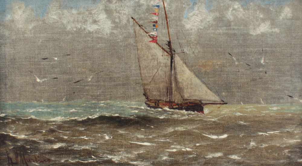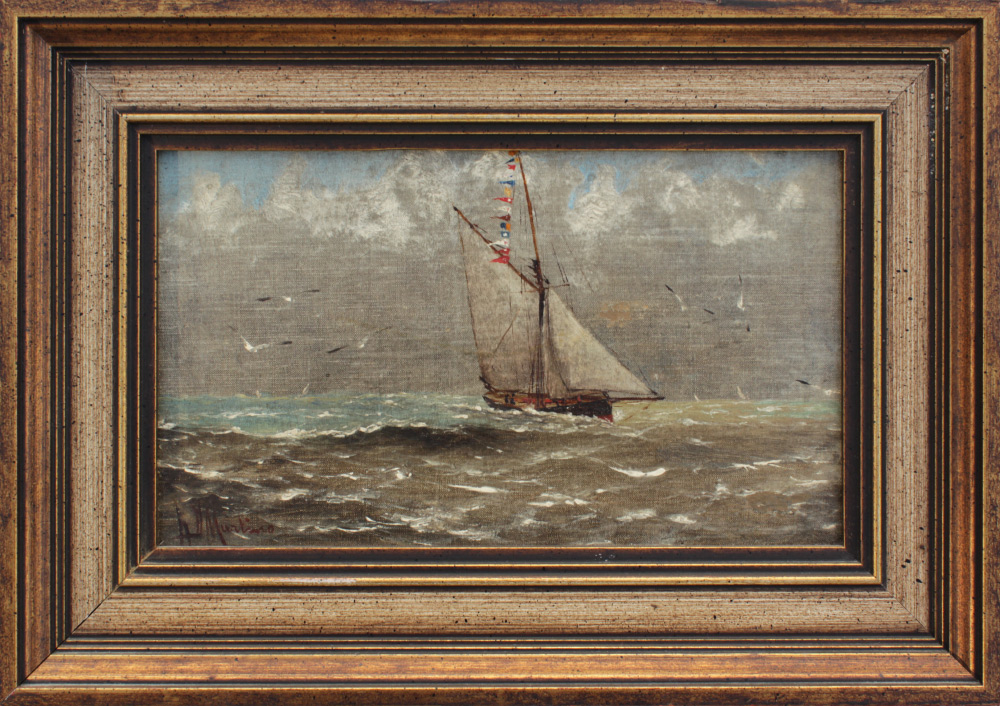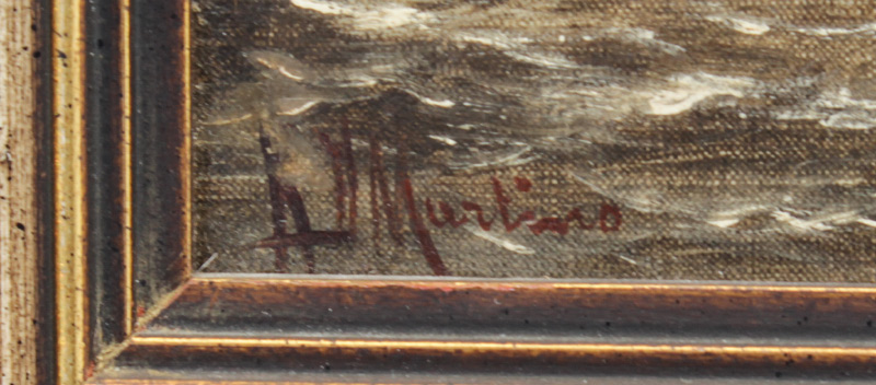 19TH C YACHTING PAINTING SIGNED MARTINO: Oil/Canvas, 5 1/2'' x 9 1/4'', signed lower left, framed, 8 1/2'' x 12 1/2''.