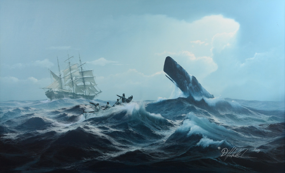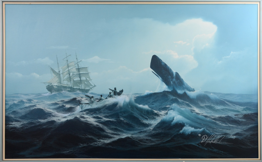 HAHLBOHM, Danny, (American, 20th C.): Whaling Action Scene, Oil/Canvas, 36'' x 60'', signed lower right and dated '79, framed, 37 1/4'' x 61 1/4''.
