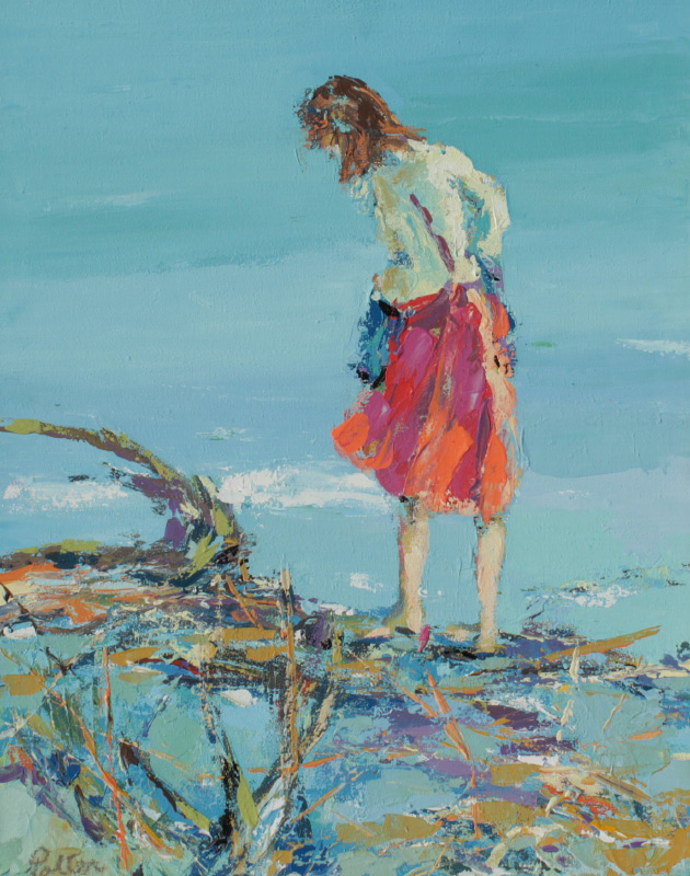 POLTER, Kurt, (American, 20th Century): ''Shelling'', depiction of a girl on shore, Oil/Canvas, signed lower left, 30'' x 24'', gilt mold frame, 38'' x 32''. Provenance - Oehlschlaeger Gallery, Sarasota, 1975.