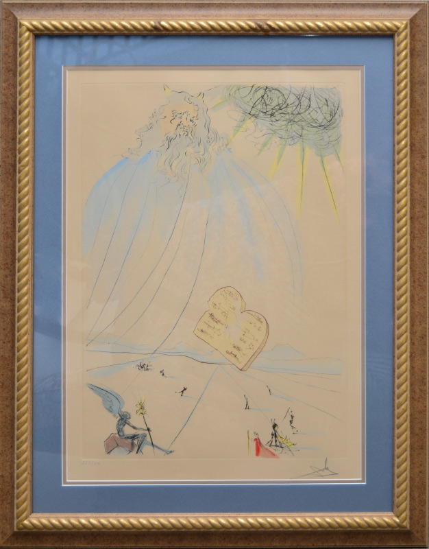 DALI, Salvador, (Spanish, 1904-1989): ''Moses'', from Dali's ''Our Historical Heritage'' series, Engraving and Pochoir, sight size 25'' x 17 1/2'', pencil signed lower right, numbered lower left 234/400, partial blindstamp visible, framed, 33'' x 26''.