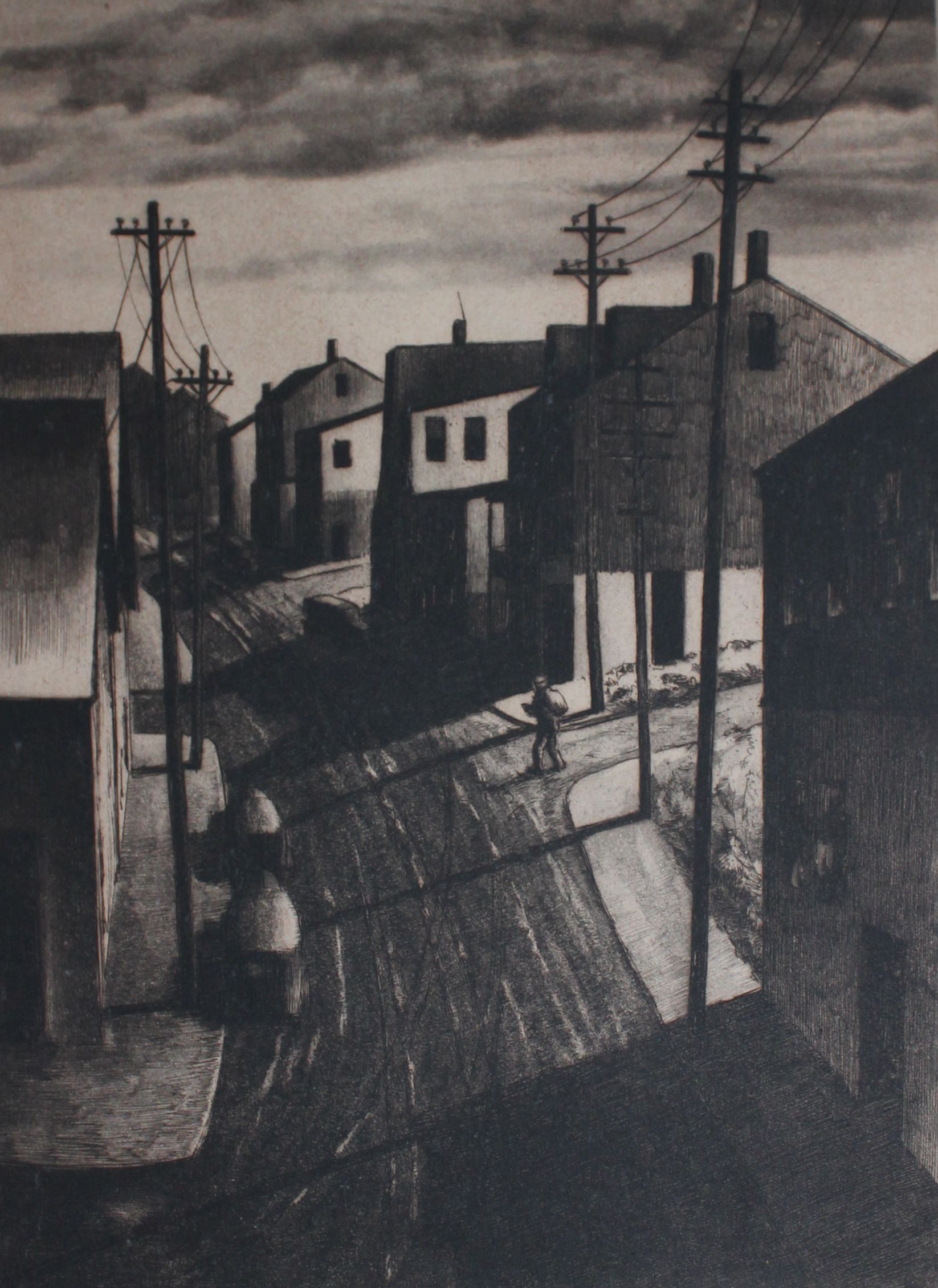 MARGOLIES, Samuel, (American, 1897-1974): ''Lone Traveler'', Etching, size with margins 13 1/4'' x 11 1/4'', pencil signed lower right, titled lower left, framed, 15 1/2'' x 13''.