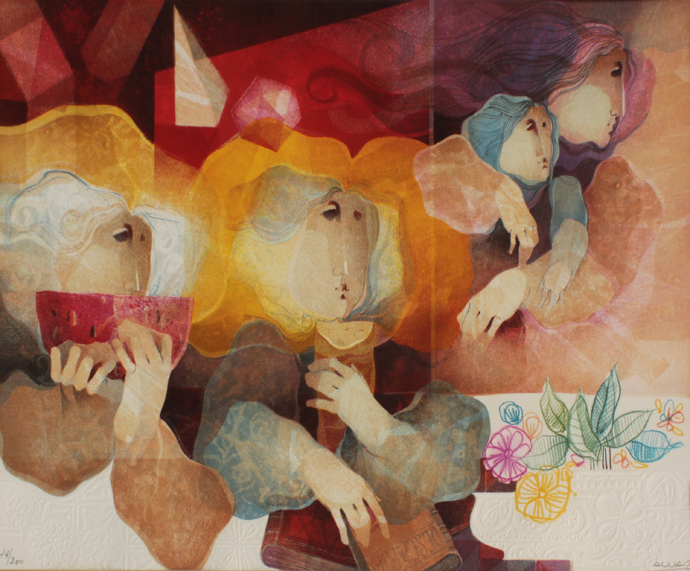 ALVAR, Sunol, (Spanish, 1935-): Watermelon, Women, Lithograph with embossing, sight size 19'' x 25'', pencil signed lower right, numbered lower left 44/200, framed, 30'' x 36''.