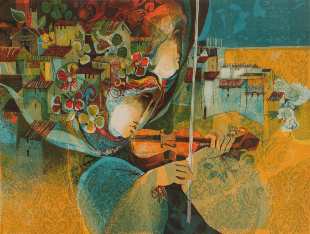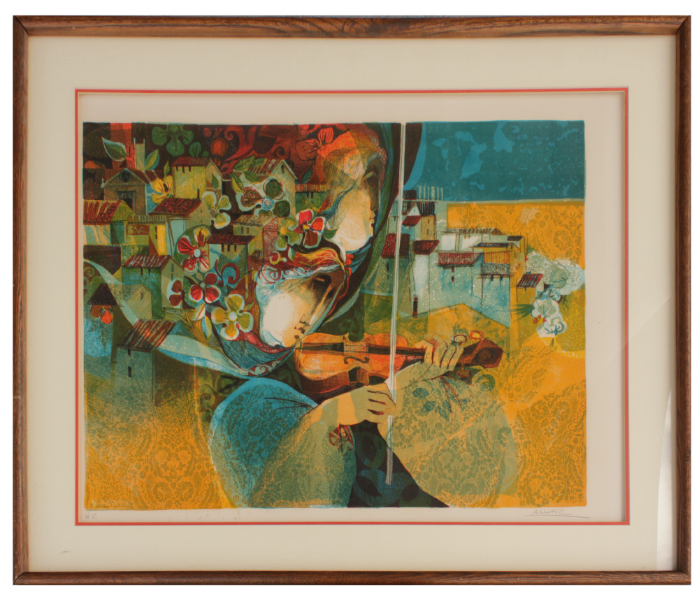 ALVAR, Sunol, (Spanish, 1935-): Violin Player, 23'' X 31'', HC, Lithograph, pencil signed lower right, framed, 30'' x 38''.