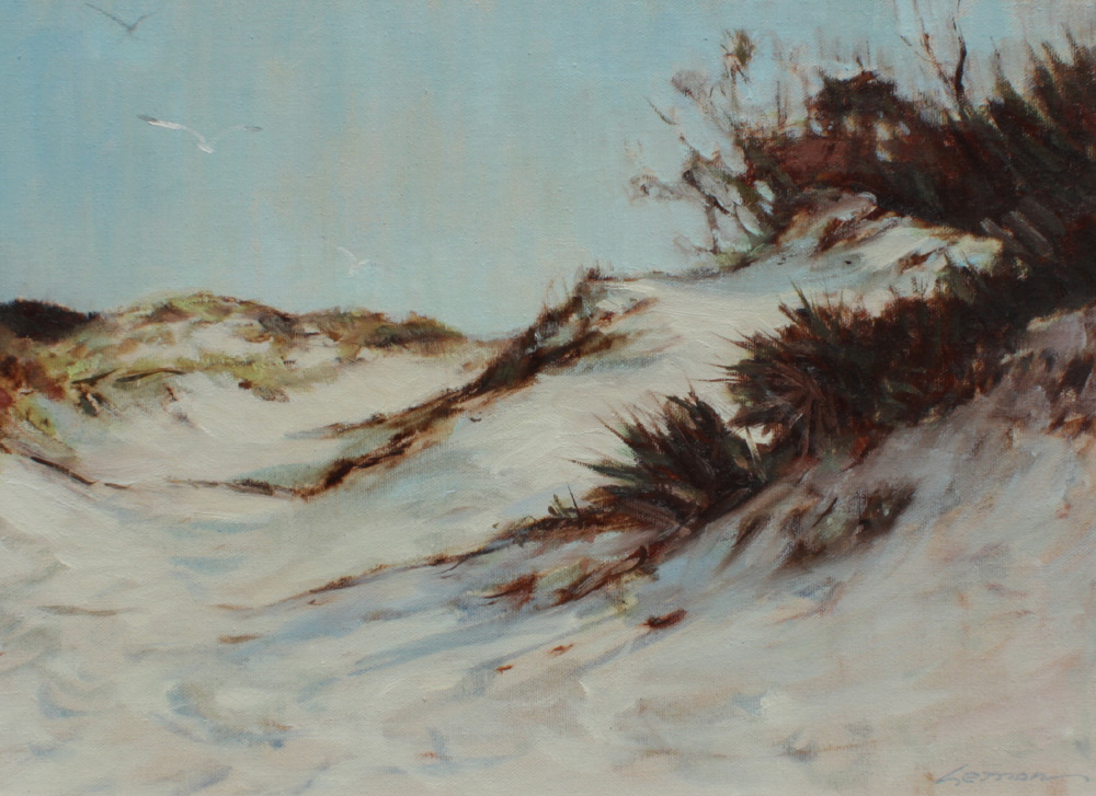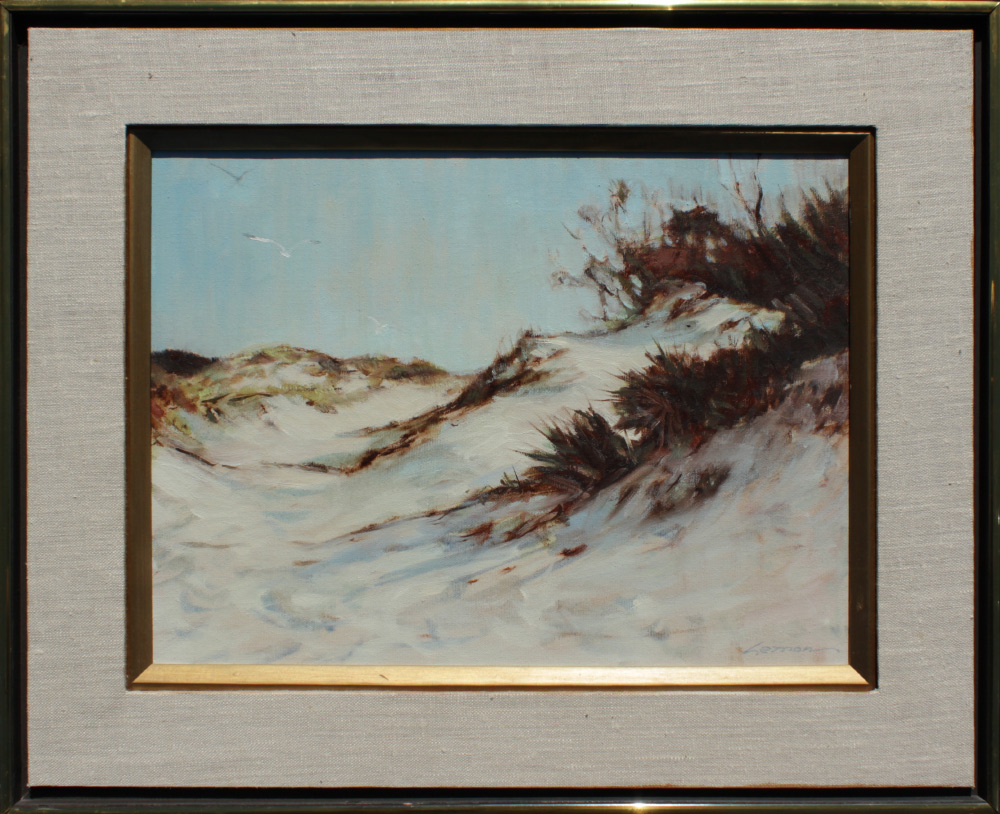 LEMON, Don, (American, 20th Century): ''Florida Dunes'', depiction of dunes with sea grass, Oil/Canvas, signed lower right, 12'' x 16'', gilt mold frame. Purchased from the artists 1973.