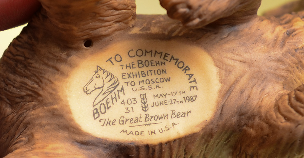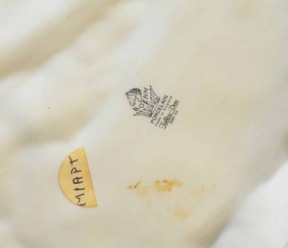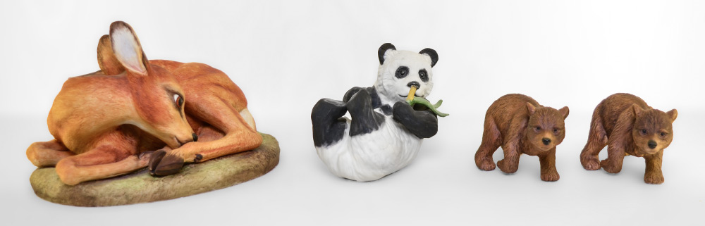 BOEHM PORCELAIN BEARS & DEER: 4 piece group to include 2 Brown Bears (2'' x 4''), Panda bear and the Fallow Deer (5 1/2'' x 8'').