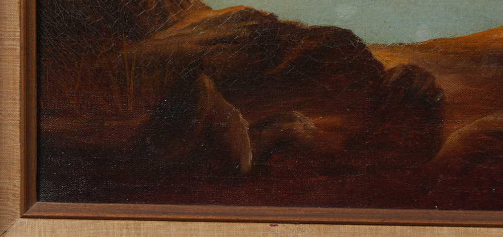 CONDITION: Relined, scattered craquelure and inpaint, several flecks, sold as is.