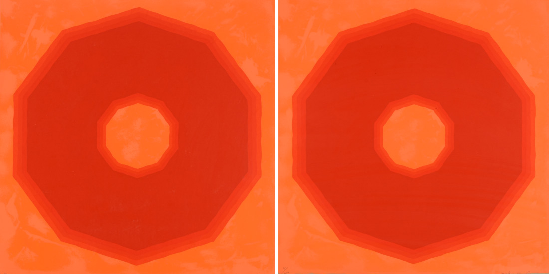 NOBUMITSU FUKUI, (Japanese, 1942-): 2 Op-Art Serigraphs, One is an Artist Proof, the other numbered 4/100, sight size 24 1/2'' x 24 1/2'', both pencil signed, matching frames, 25'' x 25 1/4''.
