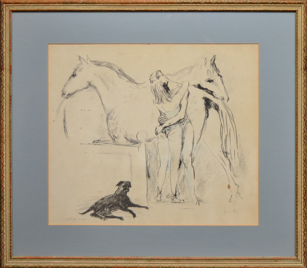 VERTES, Marcel, (French, 1895-1961): ''Cirque #14'', Lithograph, pencil? signed lower right, from an edition of 260, sight size 16'' x 19'', matted and framed behind glass, 23.5'' x 27.75'' overall.