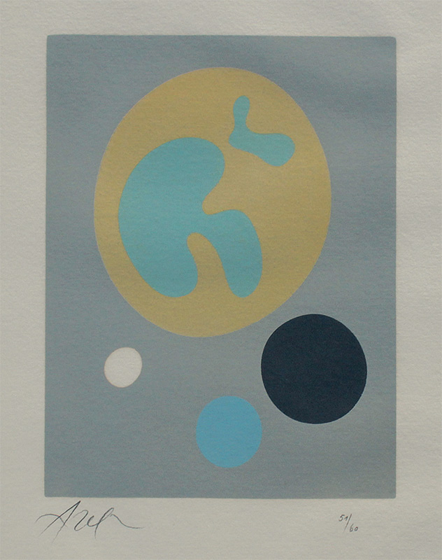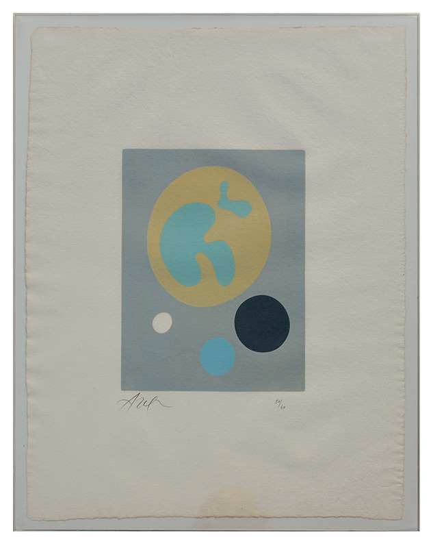 ARP, Hans, (French, 1886-1966): ''Le Soleil Recercle'', Color Woodcut, 21 1/2'' x 17 1/4'' with margins, signed lower left, numbered lower right 54/60, custom plexiglass frame, 23'' x 18 3/4''.