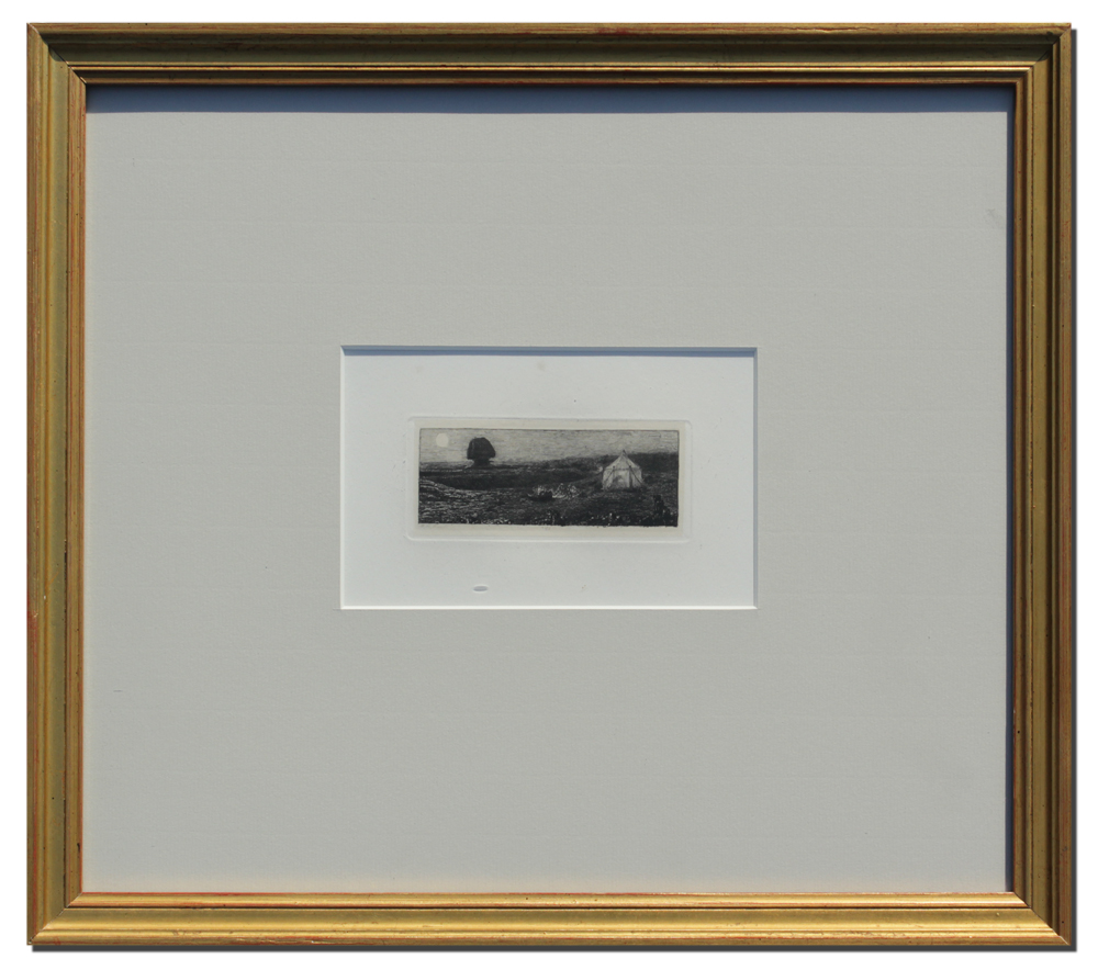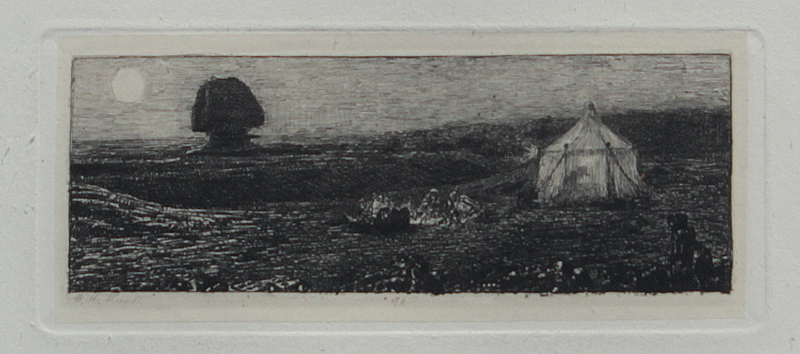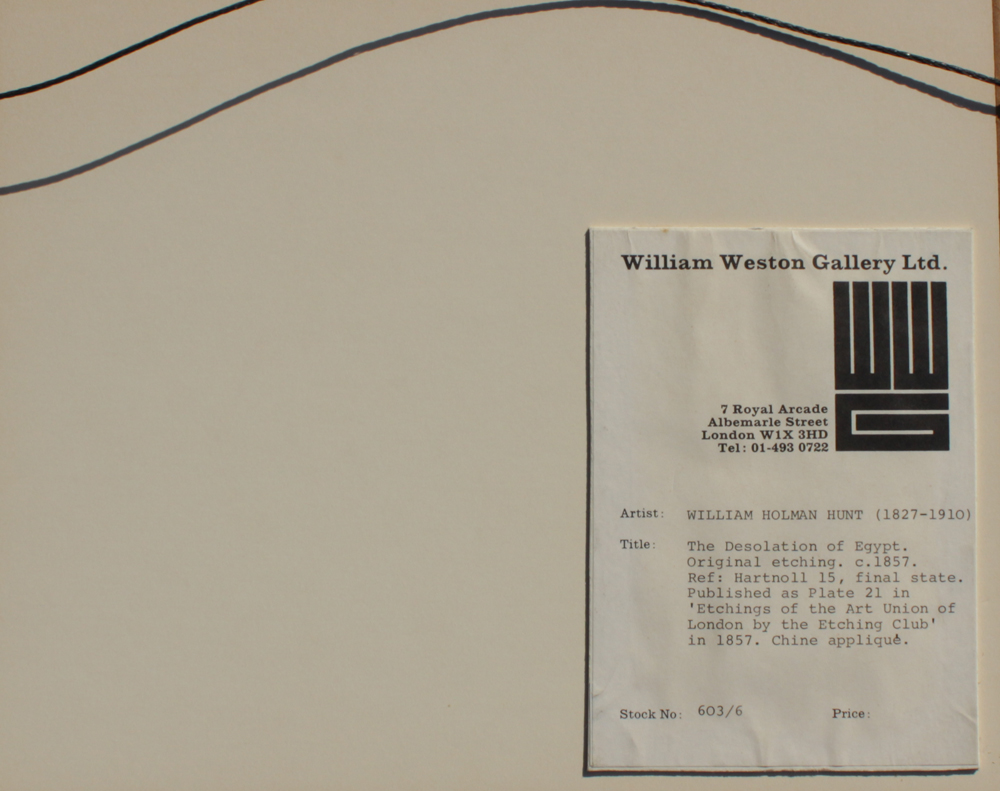 HUNT, William Holman, (English, 1827-1910): ''The Desolation of Egypt'', Etching, 1 3/4'' x 4 1/4'', signed in the plate lower left, framed, 14 1/2'' x 16 1/2'', Weston Gallery label verso. Published by the Etching Club, 1857. Original invoice from William Weston Gallery ltd., 1980. Nodine Collection.
