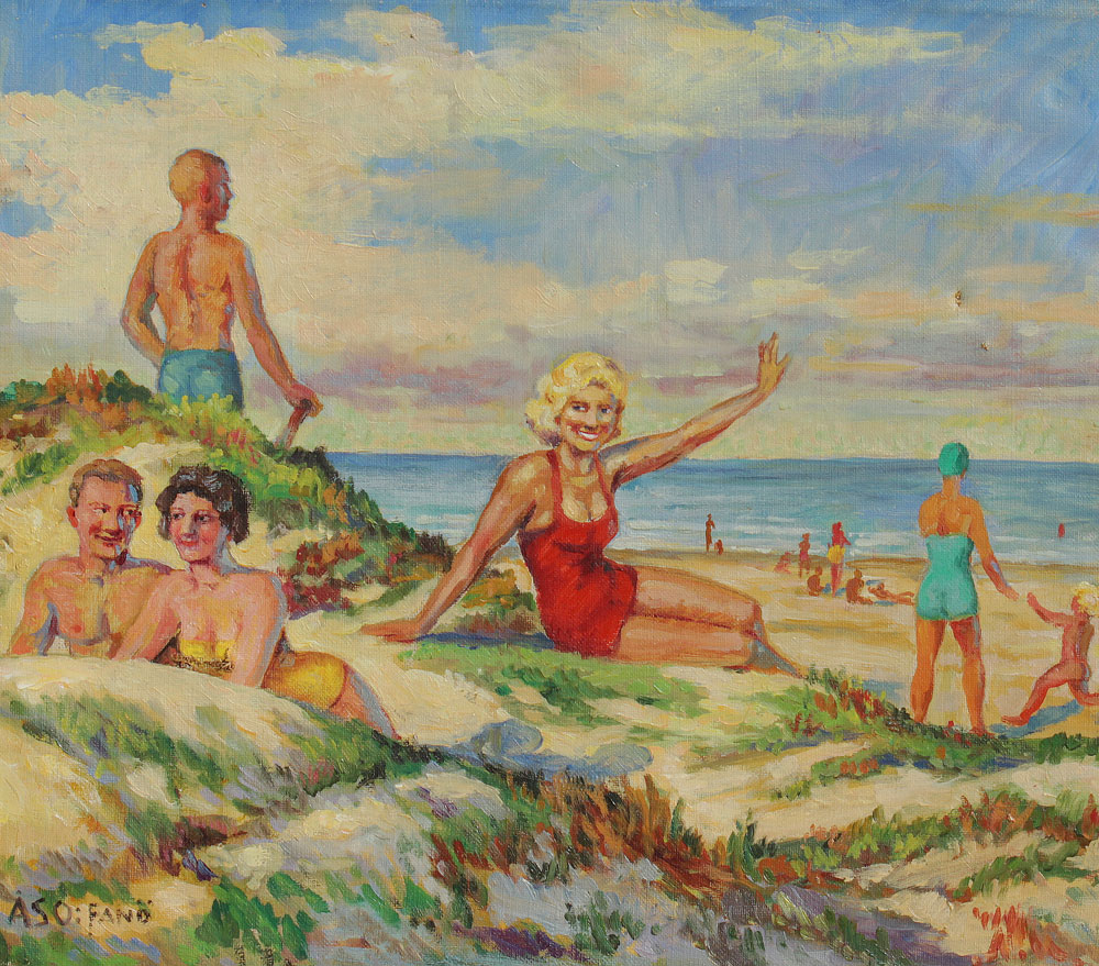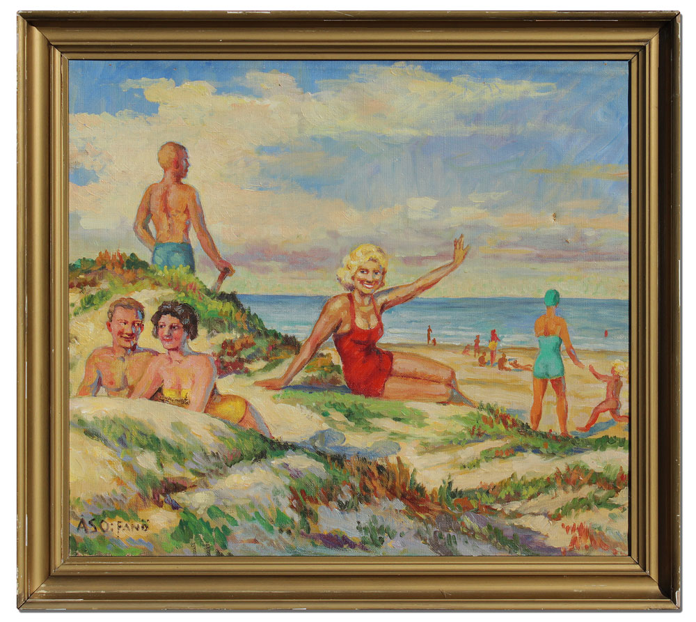 FANO BEACH PAINTING MONOGRAMED ASO: Oil/Canvas, 22'' x 25'', monogramed lower left, framed, 26'' x 28 1/2''.