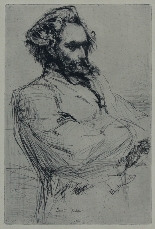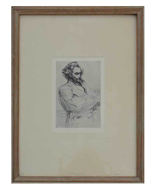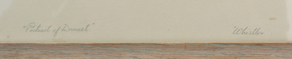 WHISTLER, James Macneil, (American, 1834-1903): Portrait of Drouet, Etching, sight size 10'' x 7'', framed, 23 1/2'' x 18'', Buffalo Fine Arts Academy, Allbright Art Gallery label verso