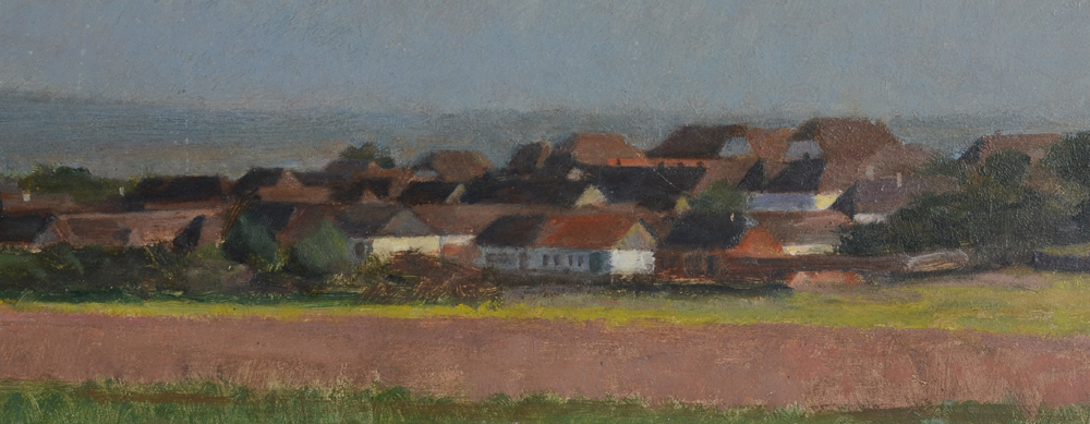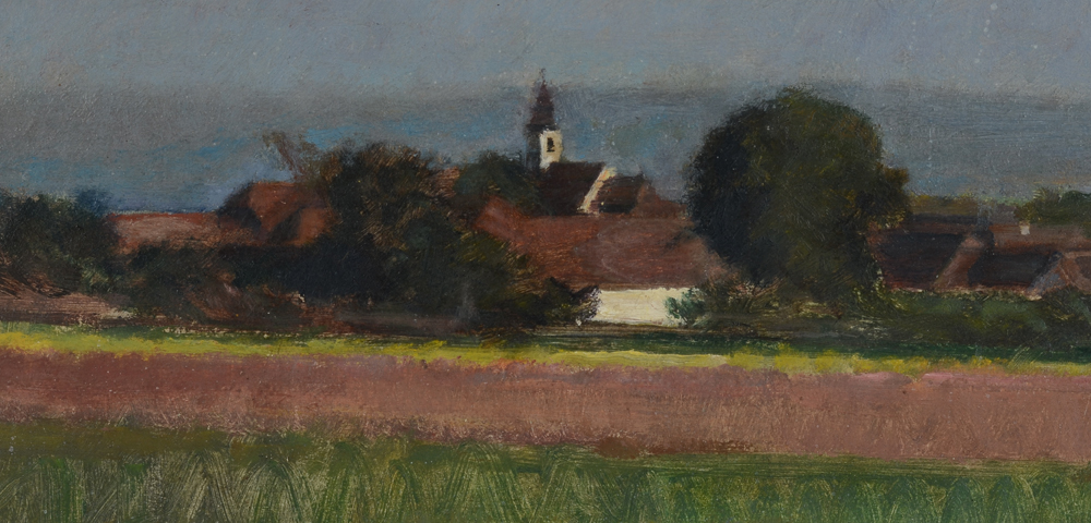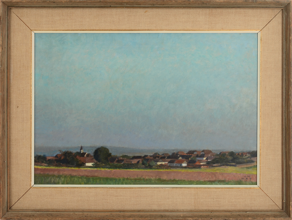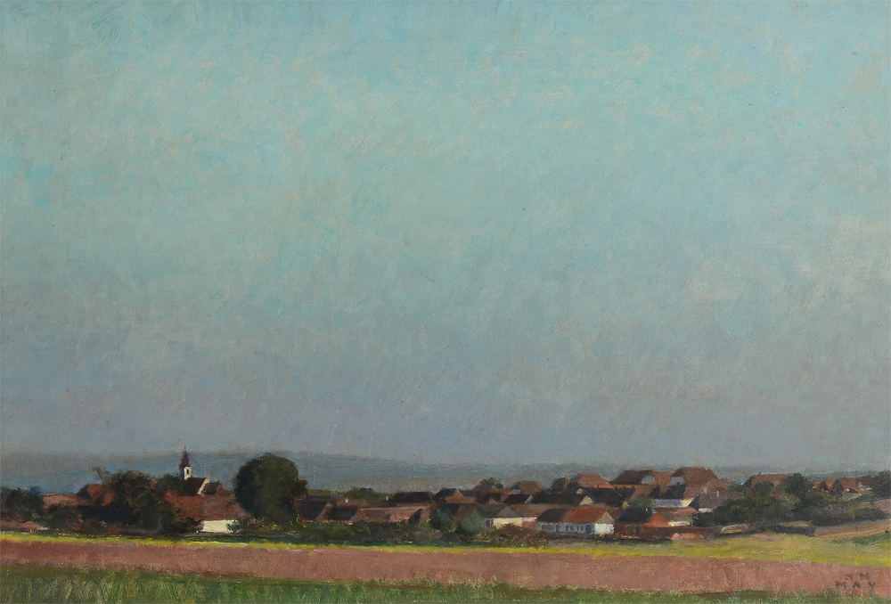 MAY, Henrietta Mabel, (Canadian, 1884-1971): Pastoral Landscape with Village in the Distance, Oil/Masonite, 15 3/4 x 23'', signed lower right, framed, 21 1/4'' x 28''. From the Neil Isman Gallery collection, NYC.