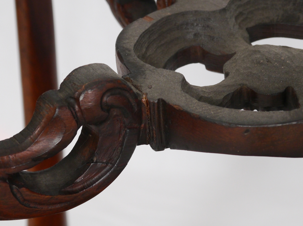 CONDITION: Repaired leg, scratches to top, other wear consistent with age and use.