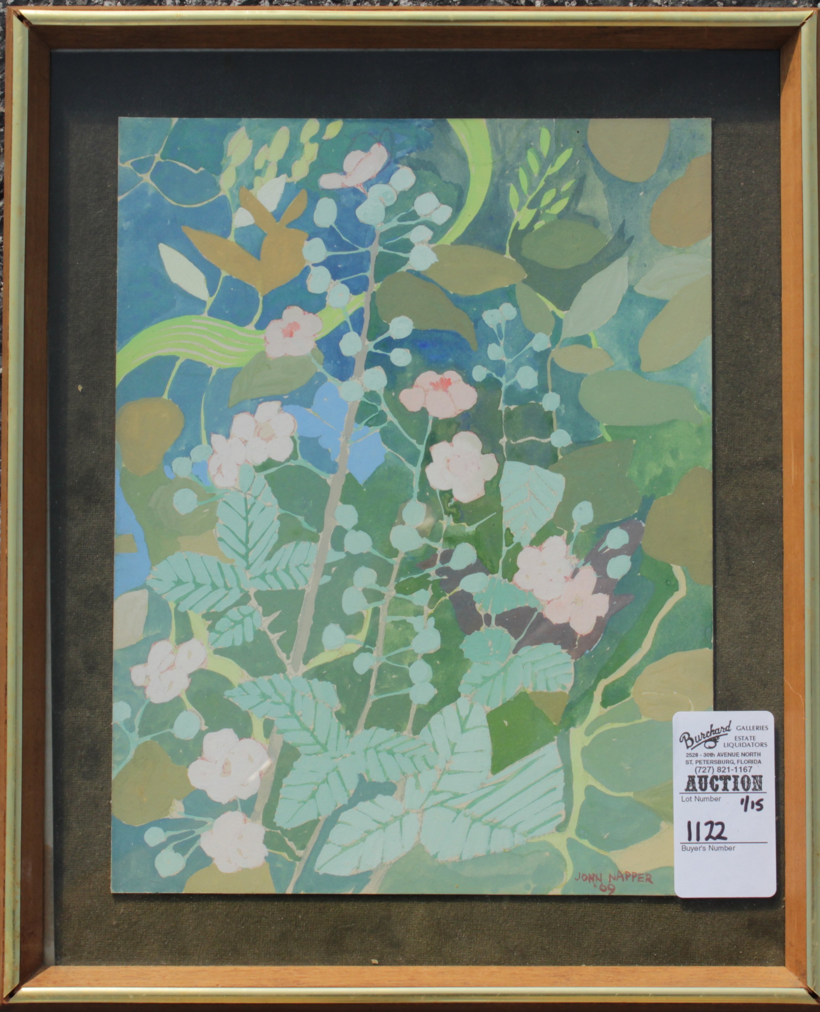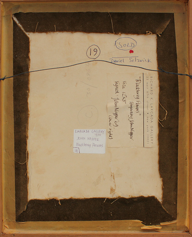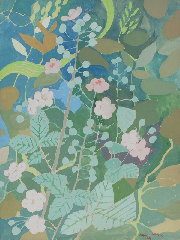NAPPER, John, (British, 1916-): ''Blackberry Flowers'', Tempera, 12'' x 8'', signed lower right and dated 1969, Richard Larcada Gallery label verso, framed, 14 1/2'' x 12''.