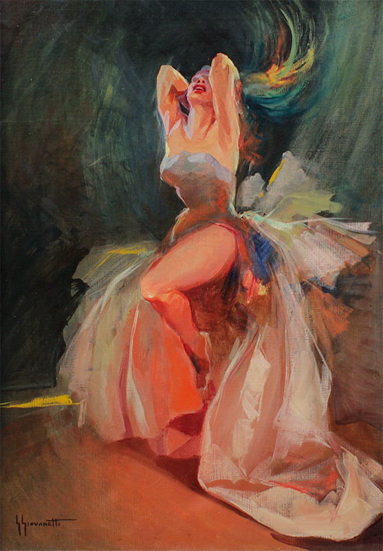 GIOVANETTI, Giordano, (Italian, 1906-1973): The Dancer, Oil/Canvas, 27 1/2'' x 19 3/4'', signed lower left, custom painted and gilded frame, 33 1/2'' x 26''.