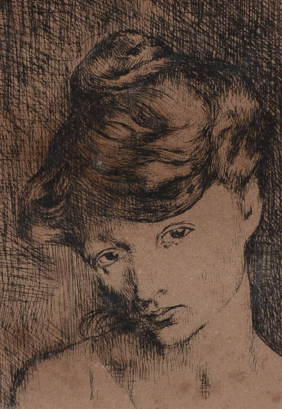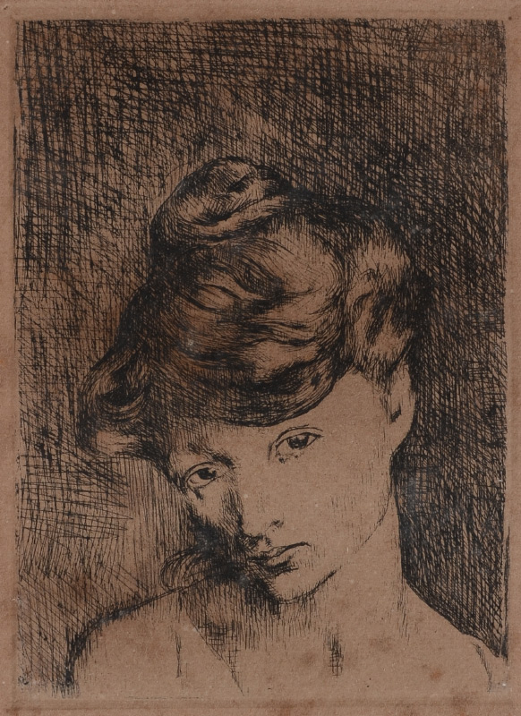 PICASSO, Pablo, (Spanish, 1881-1973): ''Tete de Femme'', from Saltimbanques, Etching, full size with margins 14 3/8'' x 11 1/2'', impression size 4 5/8'' x 3 3/8'', framed, 18 1/2'' x 16''.