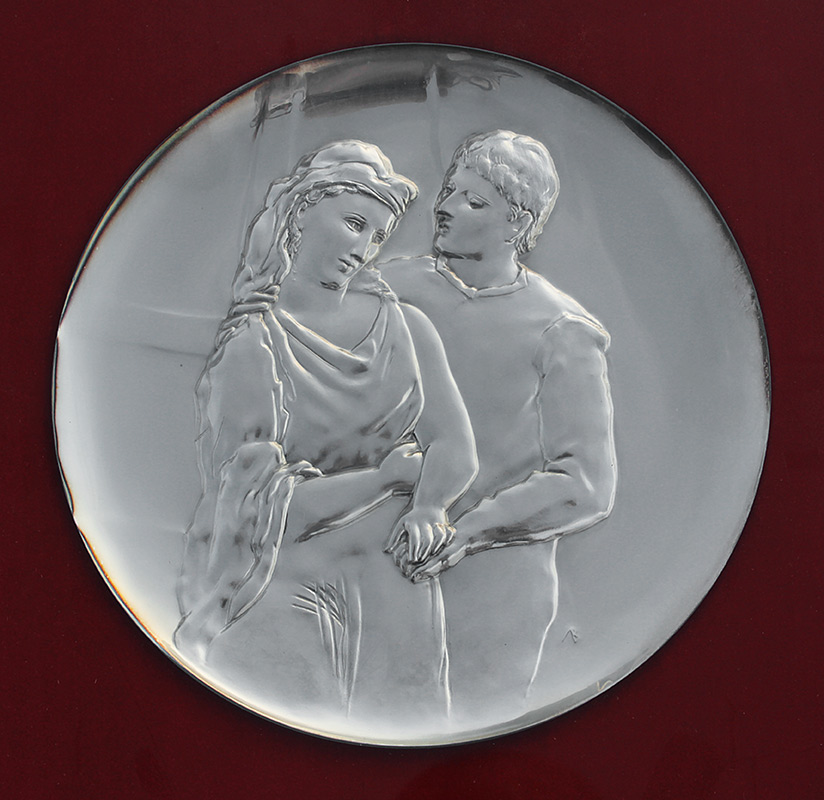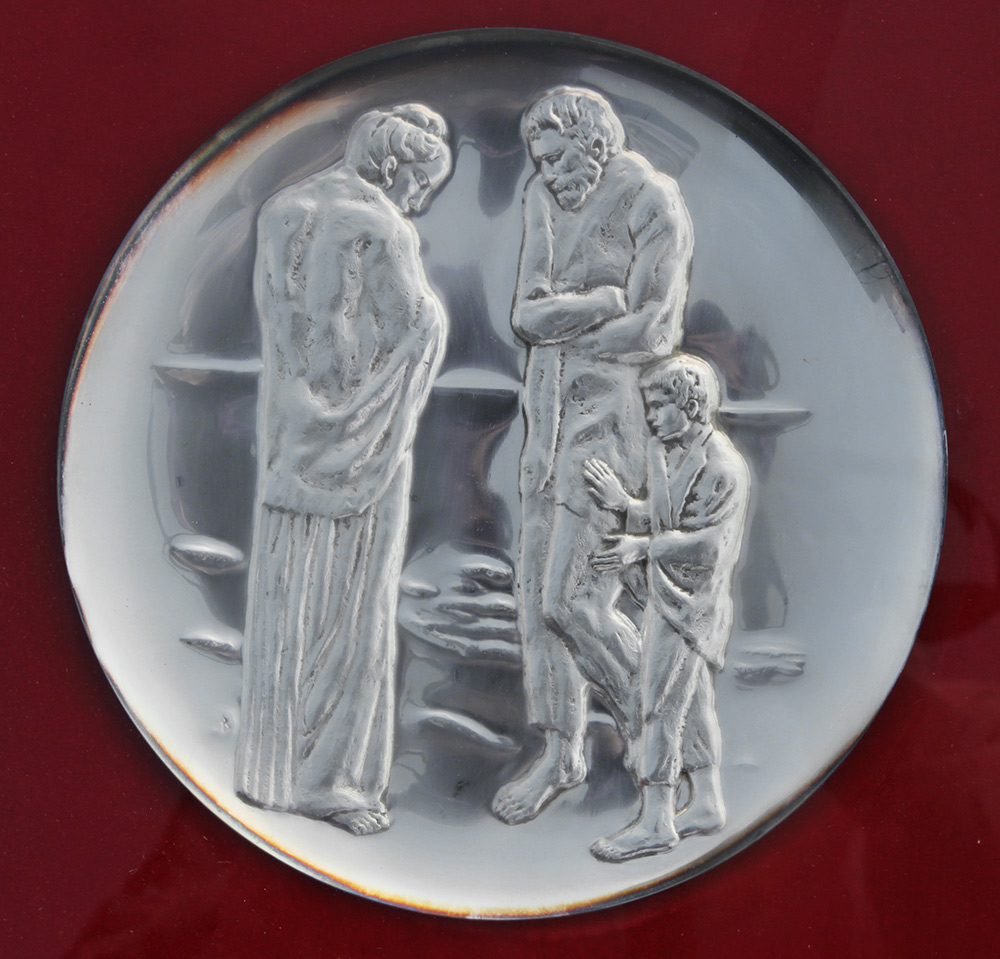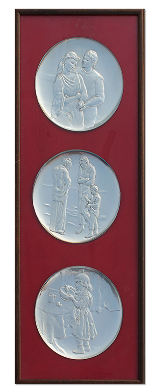 3 FRAMED HAMILTON MINT STERLING PICASSO PLATES: 3 plates of .999 silver, each based on a Picasso painting and numbered 2258 to include 1) 1972 ''Le Gourmet''. 2) 1973 ''The Lovers''. 3) 1974 ''The Tragedy''. Each plate 8'' dia., approx. 26.4 troy oz. Sold in frame 32 3/4'' x 12 1/4'' x 1 1/4''.