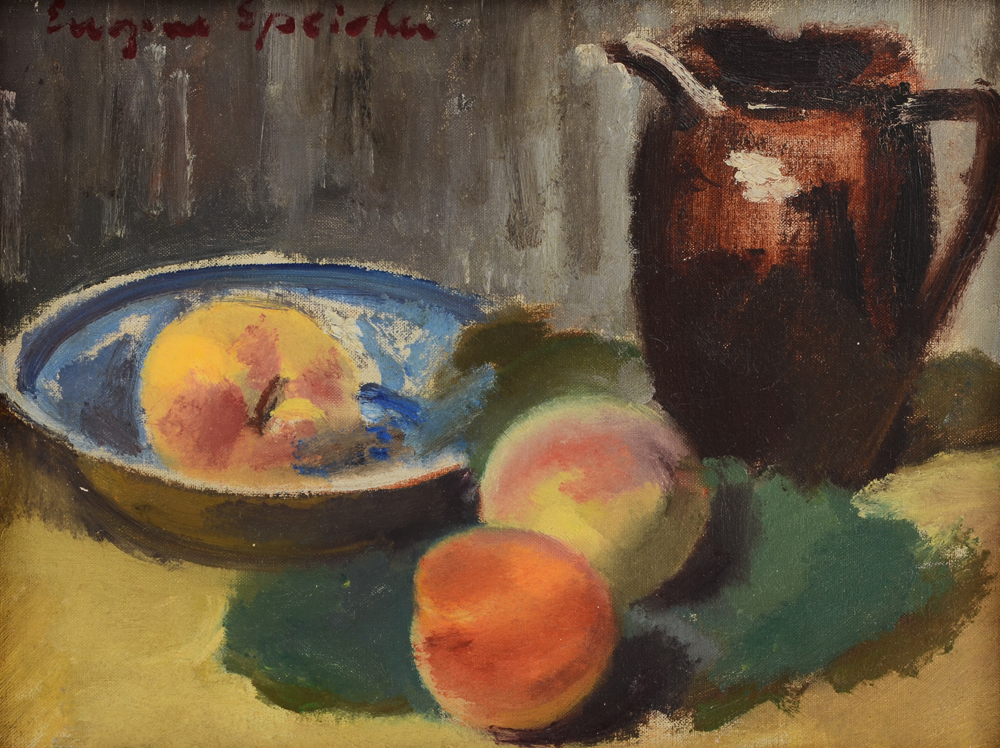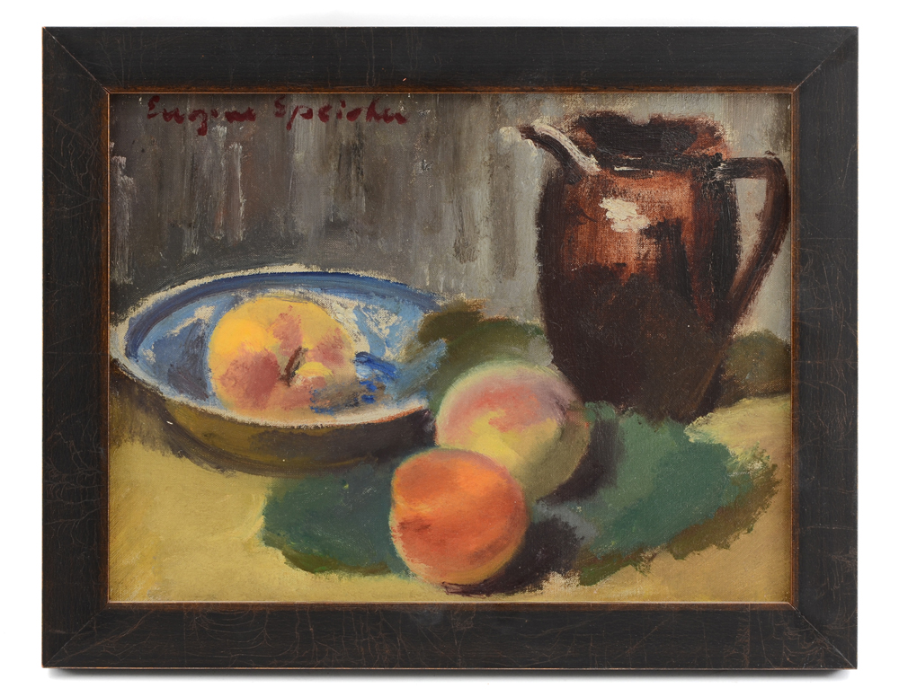 SPEICHER, Eugene, (American, 1883-1962): Still Life with Peaches and Pitcher, Oil/Canvas, 10'' x 13'', signed upper left, contemporary frame, 12'' x 15''.