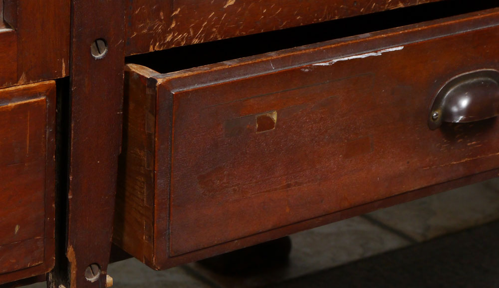 CONDITION: Door latches worn but doors kept up by support of drawers.
