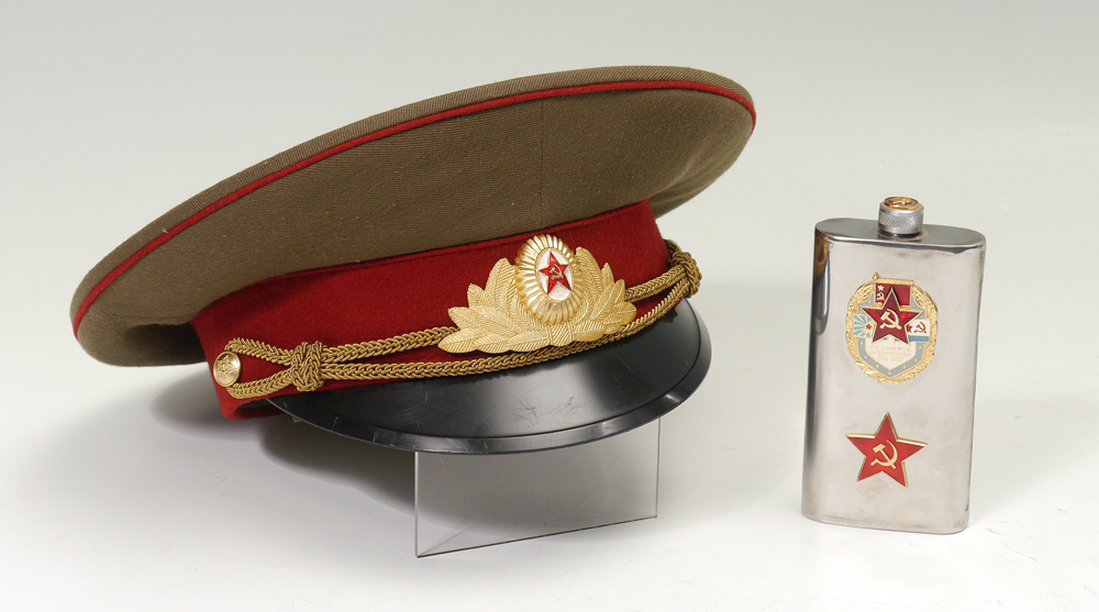 RUSSIAN ARMY QUARTERMASTERS UNIFORM: To include jacket with original insignias and decoration, no size label evident; hat with original hat badge and cord.