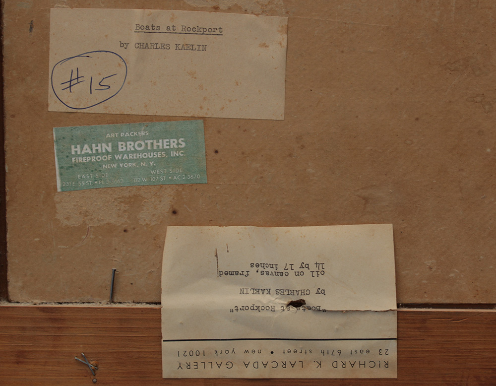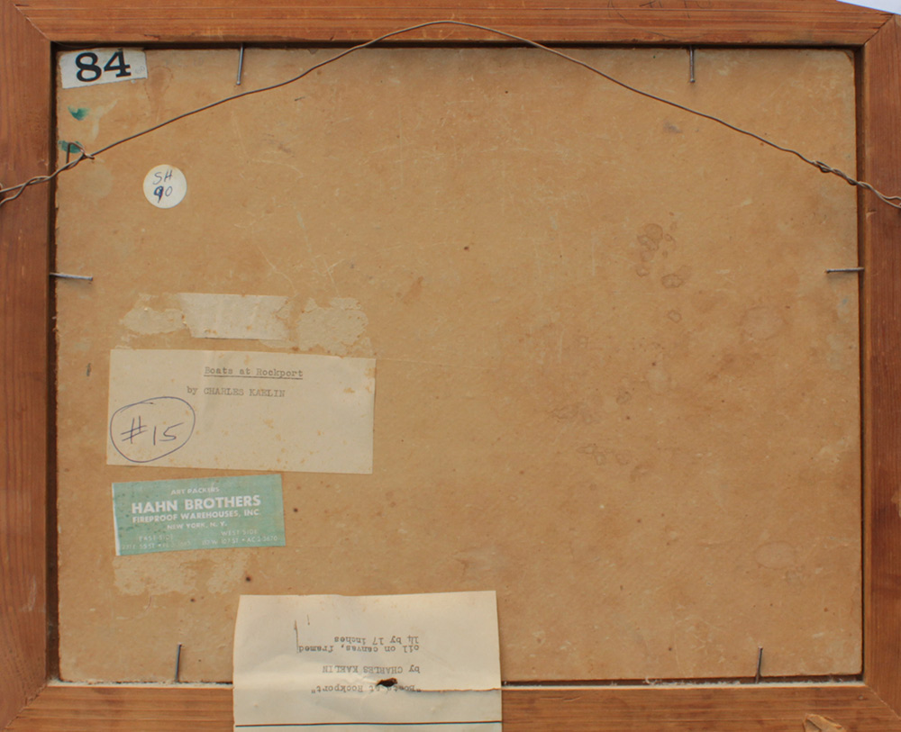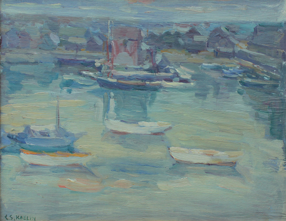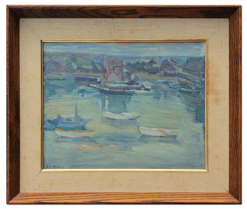 KAELIN, Charles Salis, (American, 1858-1929): ''Boats at Rockport, Oil/Board, 11'' x 13 7/8'', signed lower left, Richard Larcada Gallery label verso, framed, 16'' x 18 1/2''