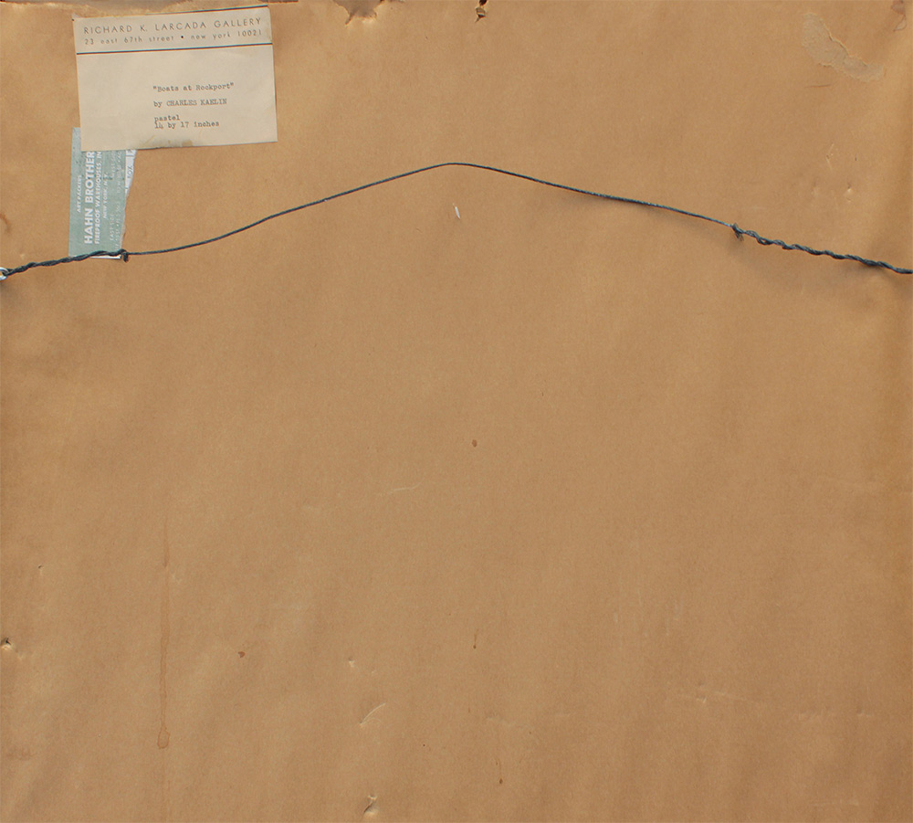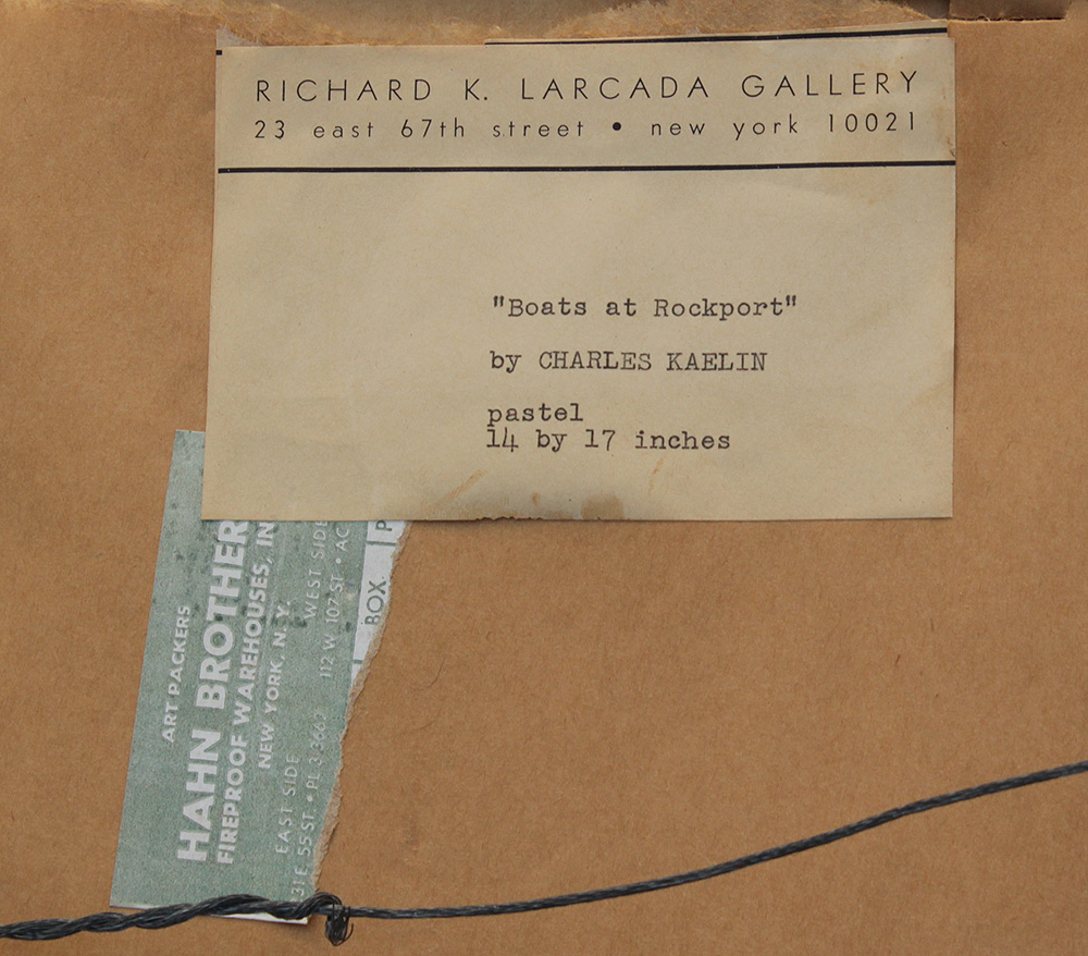 KAELIN, Charles Salis, (American, 1858-1929): ''Boats at Rockport'', Pastel, sight size 13 1/2'' x 16 1/2'', no visible signature, Richard Larcada Gallery label verso, framed, 20 1/2'' x 23''.