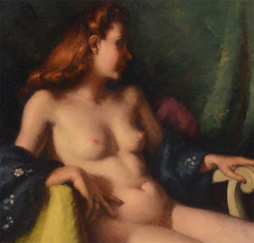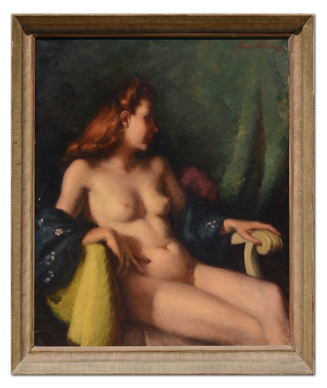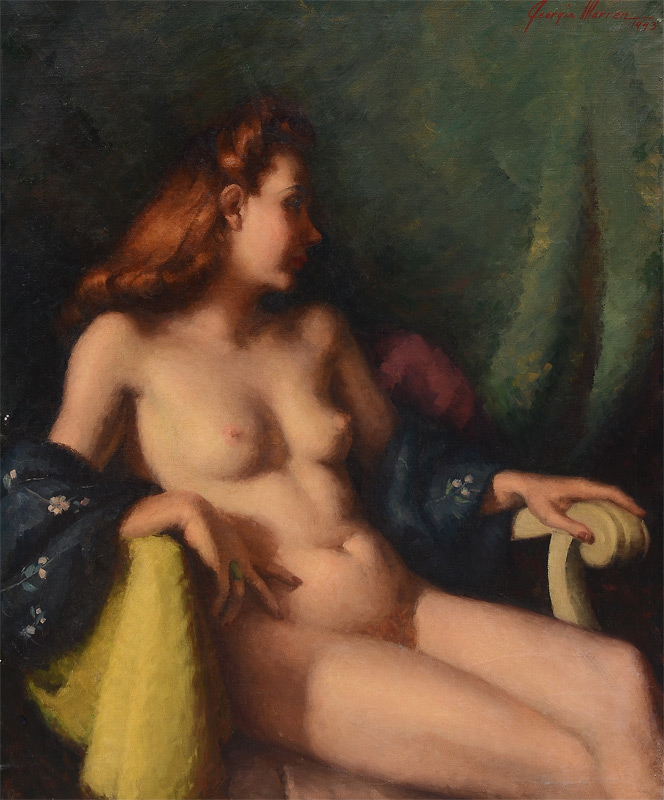 WARREN, Georgia, (American, 1899-1983): Young Nude Female Redhead Seated in an Armchair, Oil/Canvas, 40'' x 33'', signed upper right, dated 1943, painted gesso frame with minor wear 45 1/2'' x 39 1/4''.