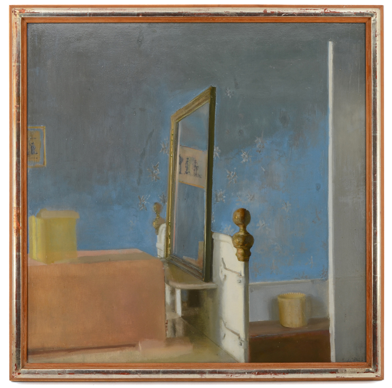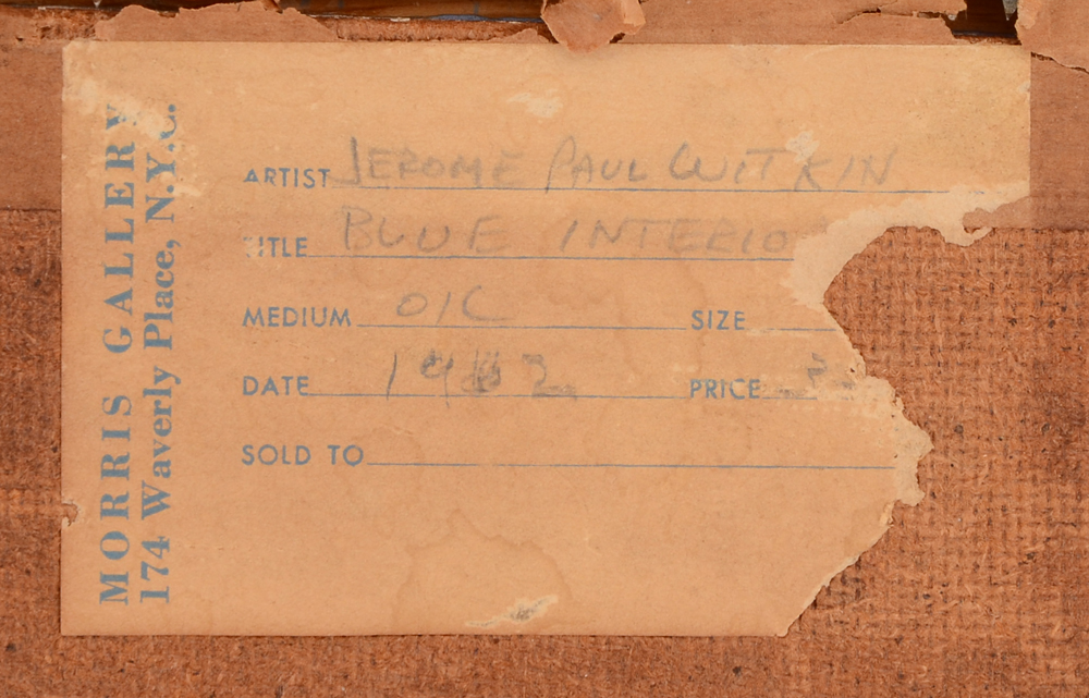 WITKIN, Jerome Paul, (American, 1939): : ''Blue Interior I'', Oil/Masonite, 24'' x 24'', signed lower right and dated '62, framed, Morris Gallery label affixed verso, framed, 26 1/4'' x 26 1/4'', title inscribed verso.