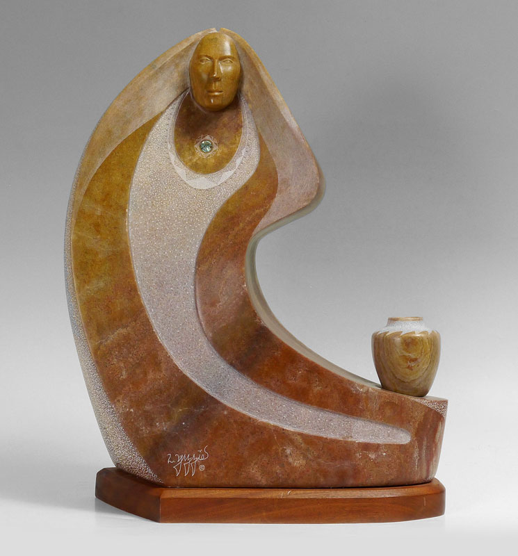 YAZZIE, Larry, (American, 20th/21st Century): Carving of Native American Indian. Overall measures 27'' h. x 21'' x 9''.
