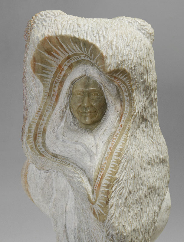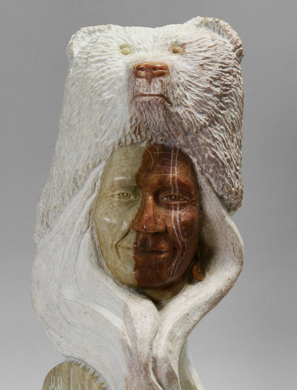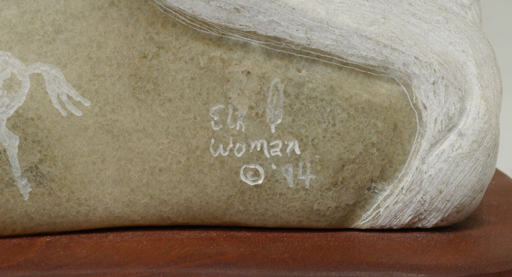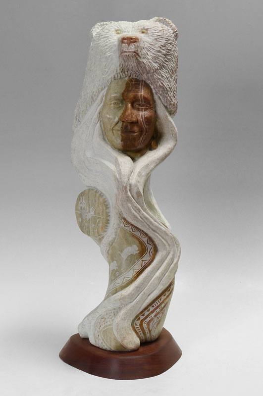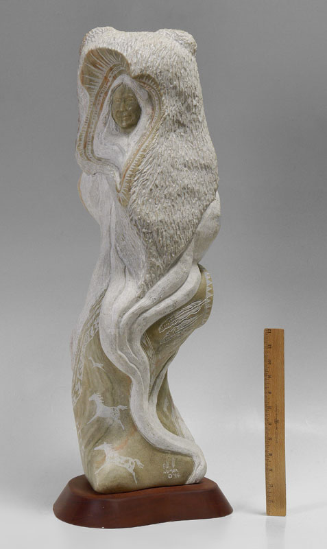 WHITMAN, Kathy ''Elk Woman'', (Mandan, Hidatsa & Arikara) Elk Woman Carving w/Bear Head, overall measures 32'' h. including 10'' base x 12'' base dia.