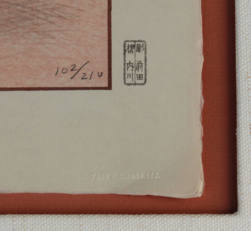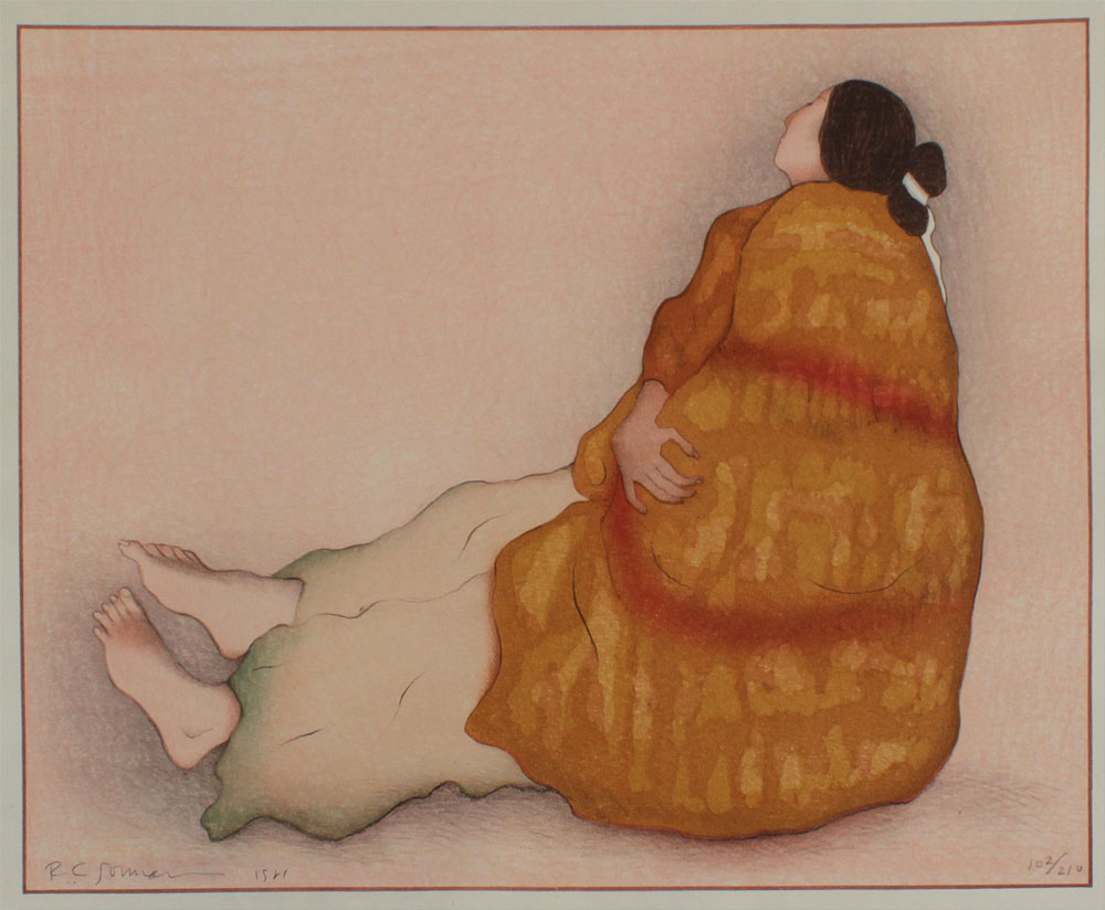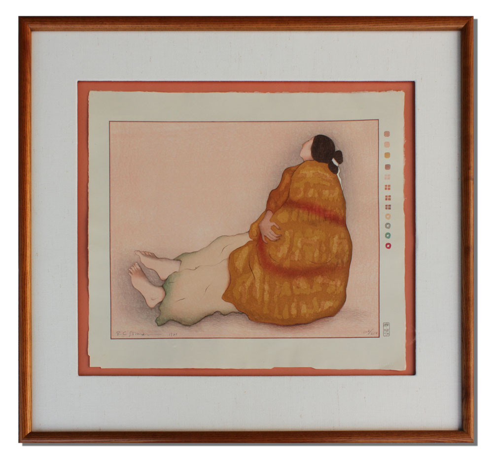 GORMAN, Rudolph Carl (R.C.), (American, 1931-2005): ''Yuyake'' Color Woodcut, with margins 18 1/2'' x 22 1/2'', pencil signed lower left, dated 1981, numbered 102/210 lower right, Taos Editions Blind Stamp, framed, 28 1/2'' x 32 1/2''.