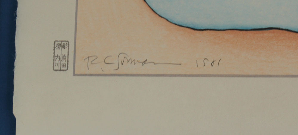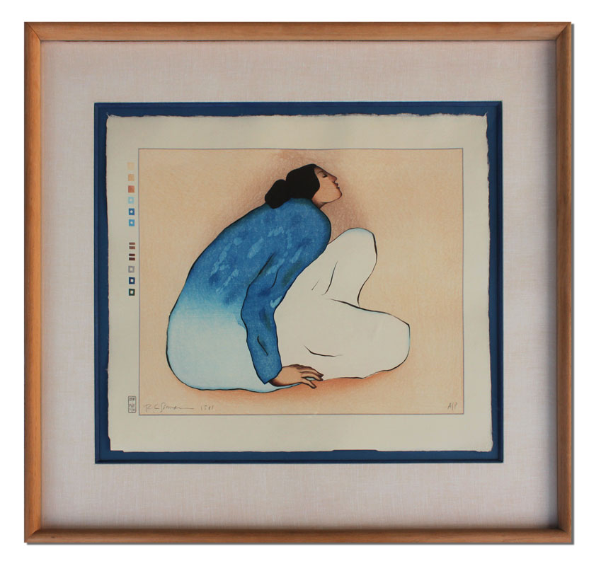 GORMAN, Rudolph Carl (R.C.), (American, 1931-2005): ''Sora'', Color Woodcut, With margins 18 1/2'' x 22 1/2'', pencil signed lower left, dated 1981, marked A/P (Artist Proof) lower right, Taos Editions Blind Stamp, framed, 28 1/2'' x 32 1/2''.