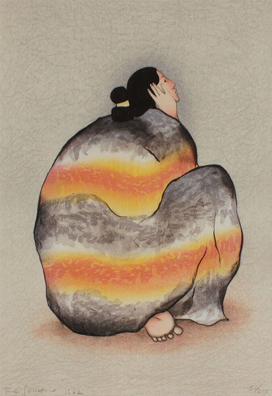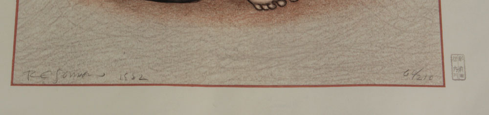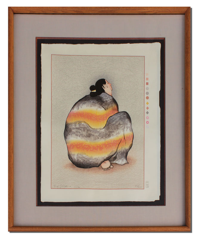 GORMAN, Rudolph Carl (R.C.), (American, 1931-2005): ''Monica'', Color Woodcut, With margins 22 1/2'' x 18 1/2'', pencil signed lower left, dated 1982, numbered 60/210 lower right, Taos Editions Blind Stamp, framed, 32 1/2'' x 28 1/2''.