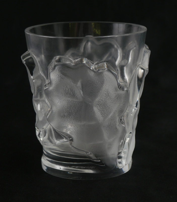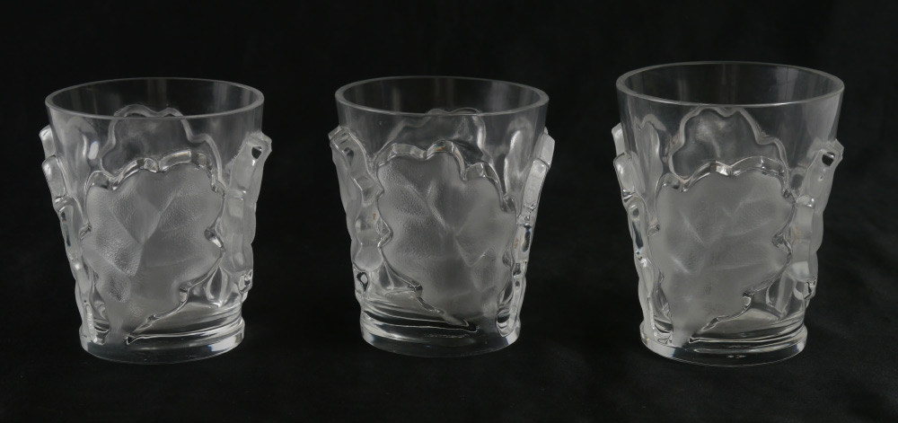 3 LALIQUE CHENE GLASS TUMBLERS: 3 tumblers in the ''Chene'' oak leaf pattern, signed Lalique, 4'' x 3 3/4''.
