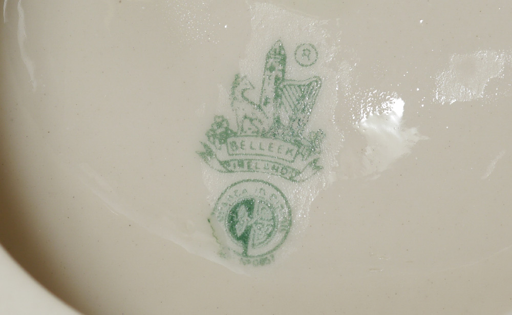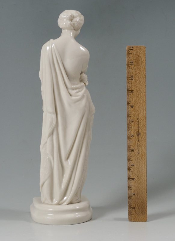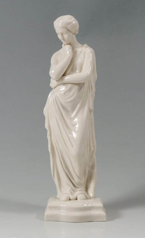 IRISH BELLEEK PORCELAIN FIGURE, MEDITATION: Ca. 1965-1981, Green Mark. Measures 15'' tall.