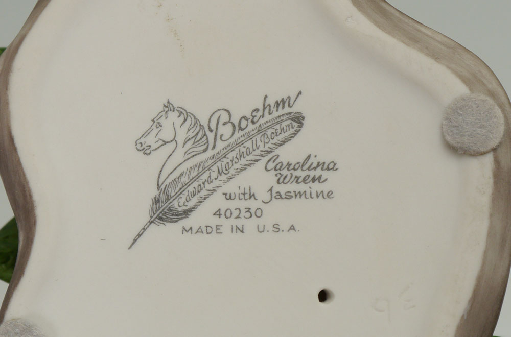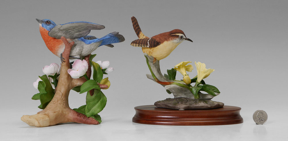 2 BOEHM PORCELAIN BIRD: 1) Eastern Blue Bird, 6 7/8'' x 6''. 2) Carolina Wren with Jasmine, 6'' x 7''. Proceeds benefit the Clearwater Audubon Society.
