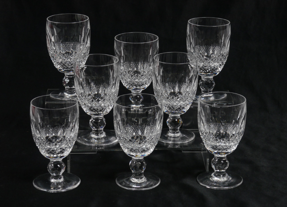 SET OF 8 WATERFORD CRYSTAL CLARET WINE STEMS IN THE COLLEEN PATTERN: Measure 4 3/4''. Signed Waterford.