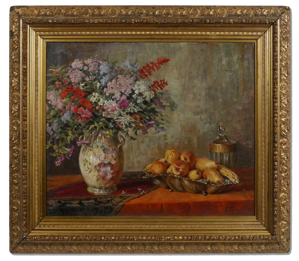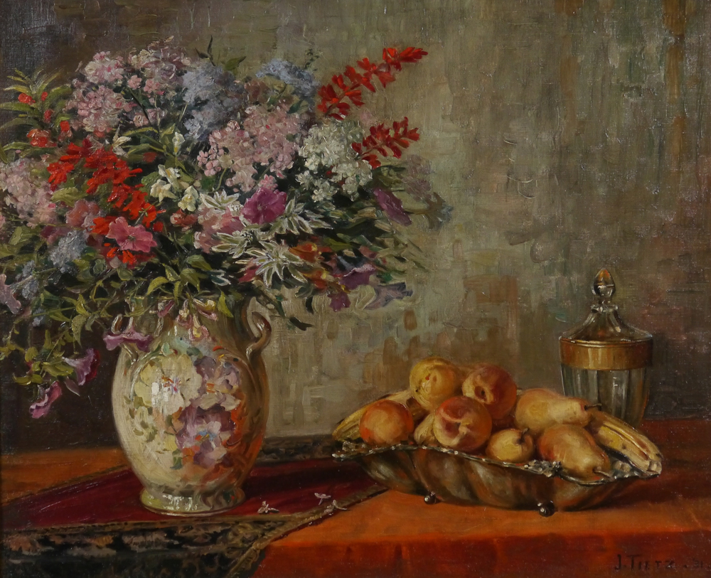 J. TIETZE STILL LIFE PAINTING: Oil/Canvas, 24'' x 30'', signed lower right, dated '31, framed, 34'' x 39''.