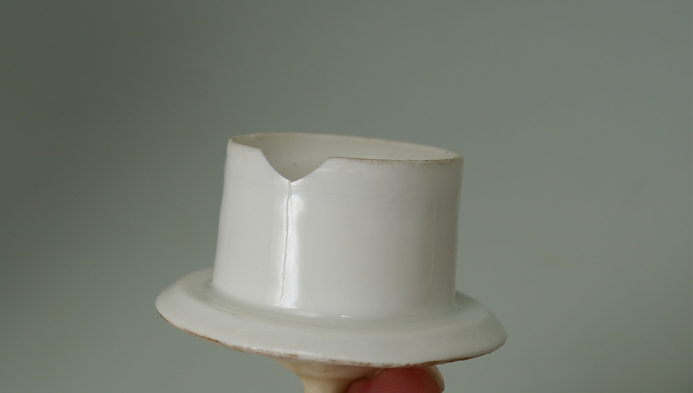 CONDITION: 4-6) Chip to inside lower edge of pot lid.
